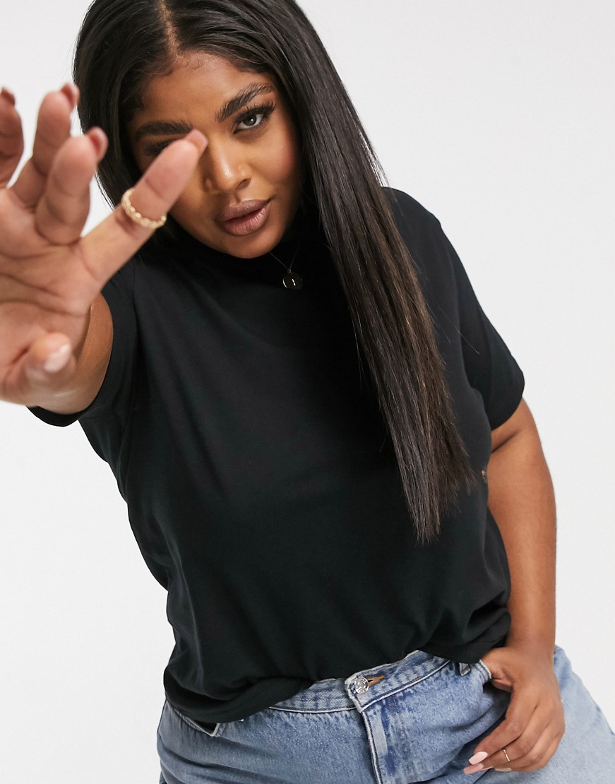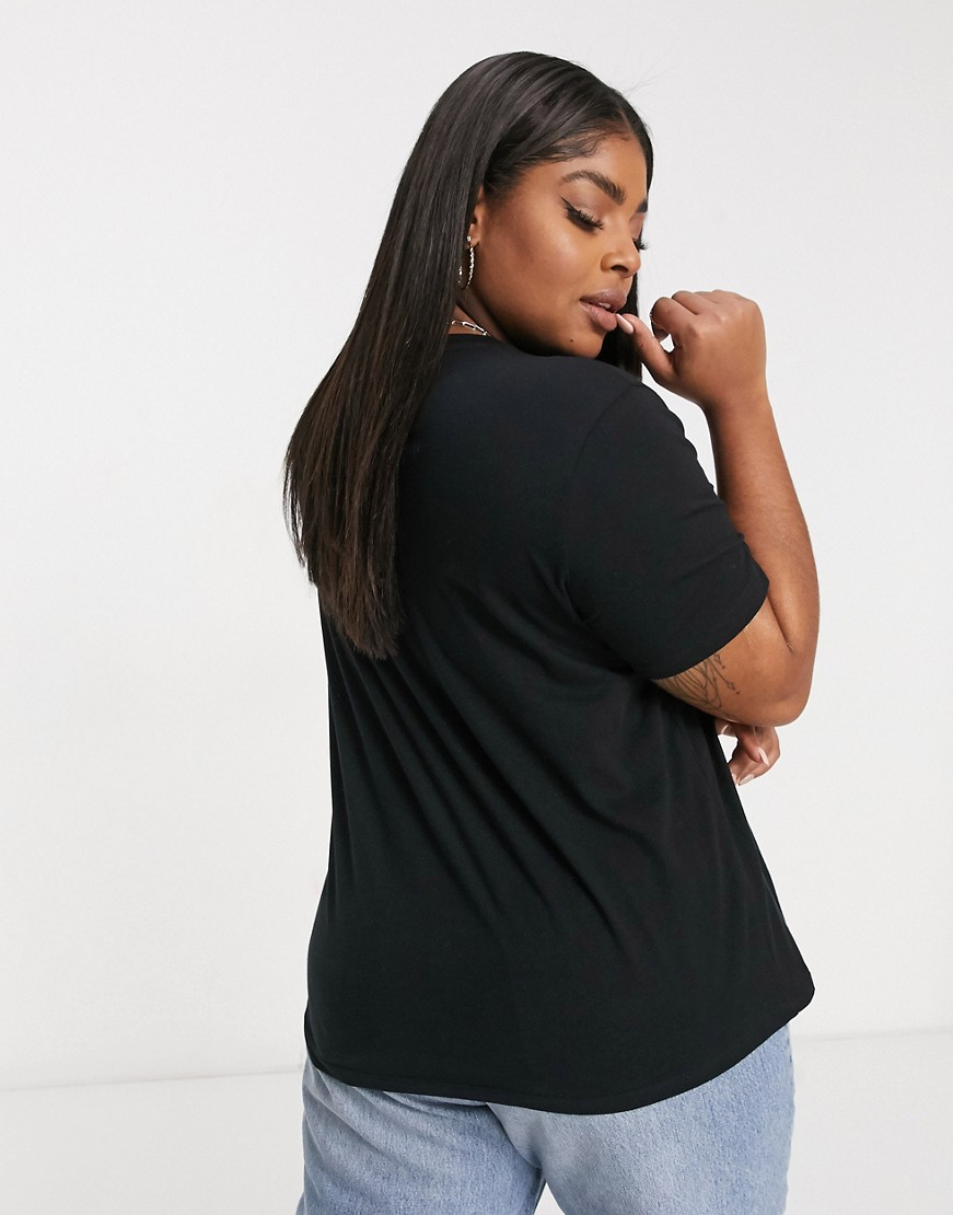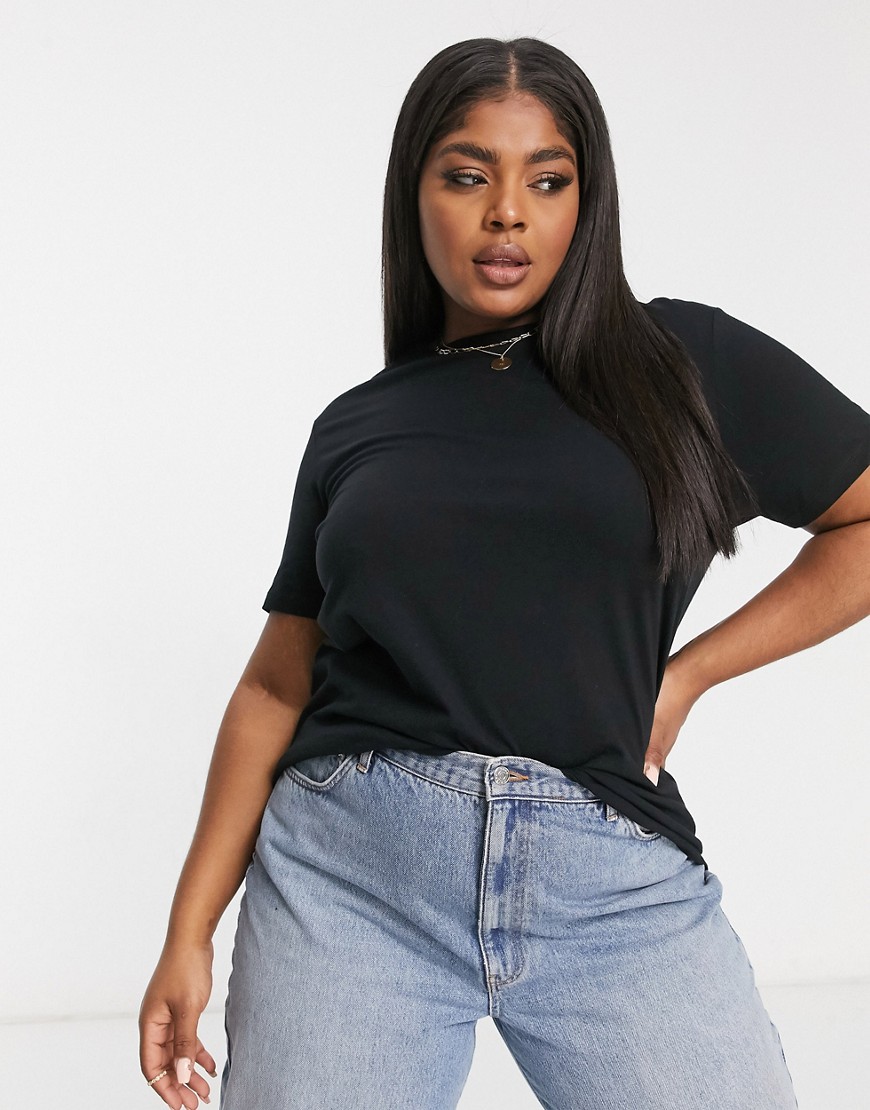 Czarny T-shirt z bawełny organicznej z okrągłym dekoltem plus size 52