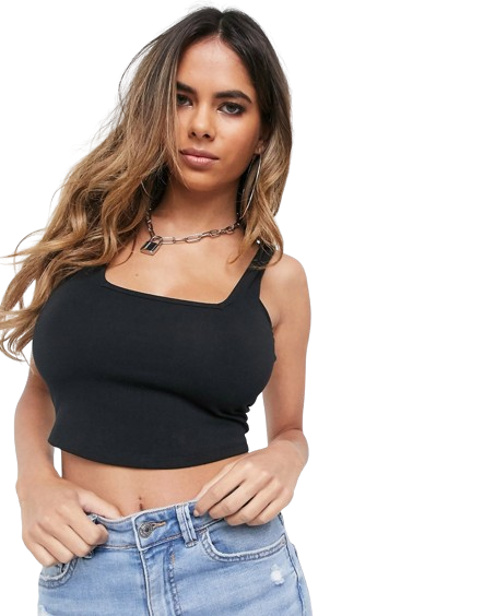 Czarny top na ramiączkach z kwadratowym dekoltem 40