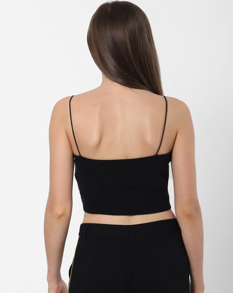 Czarny top z kwadratowym dekoltem 36