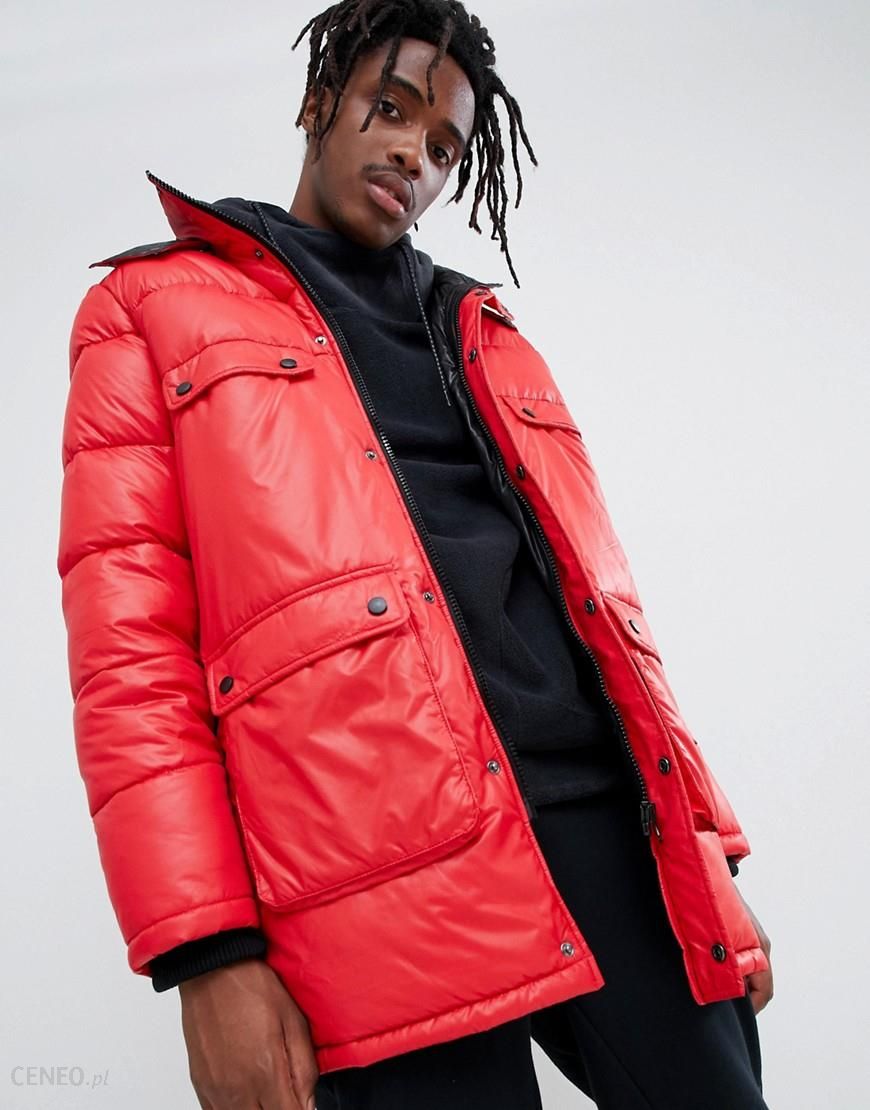 Czerwona kurtka męska zimowa parka z kożuszkiem S