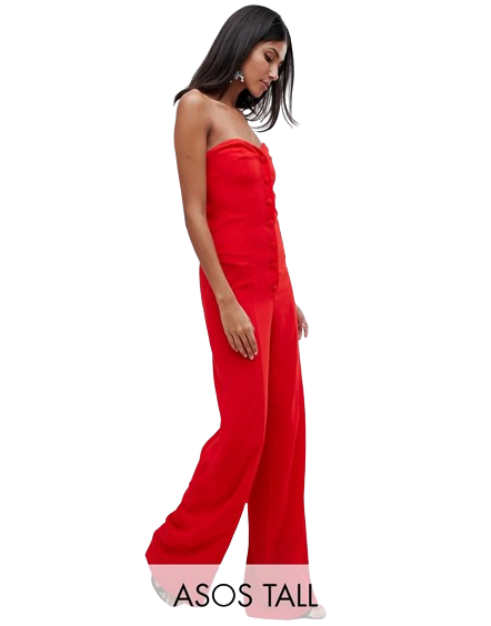 Czerwony eleganski kombinezon z dekoltem typu bandeau 36