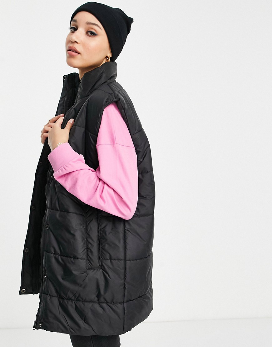 Daisy Street czarna kamizelka pikowana bezrękawnik oversize 38