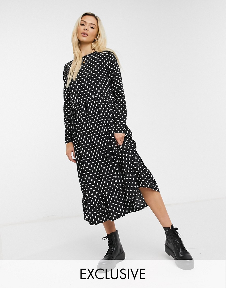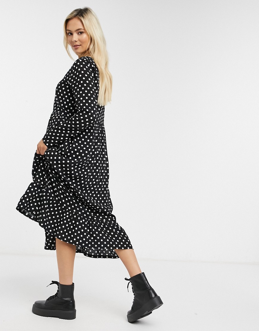 Daisy Street czarna luźna sukienka midi w kropki 34