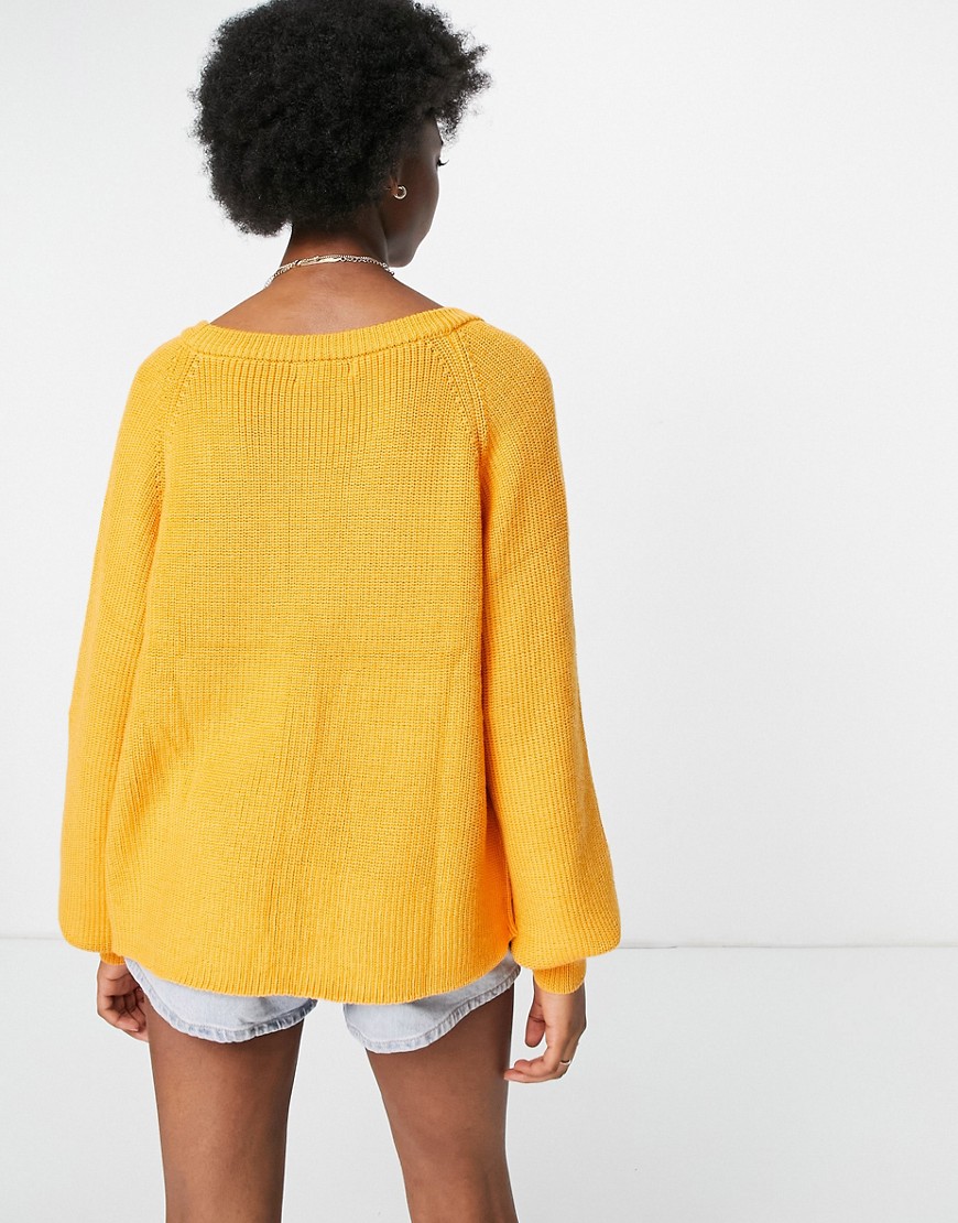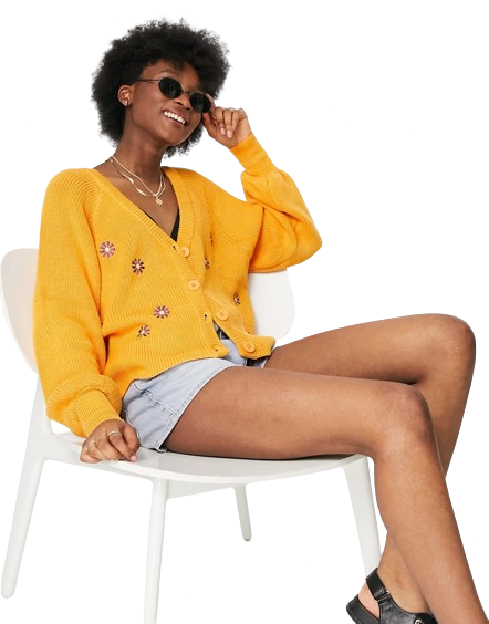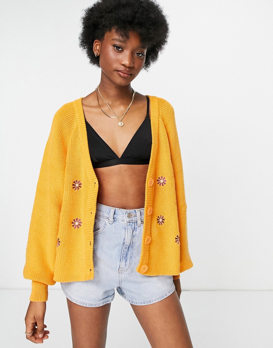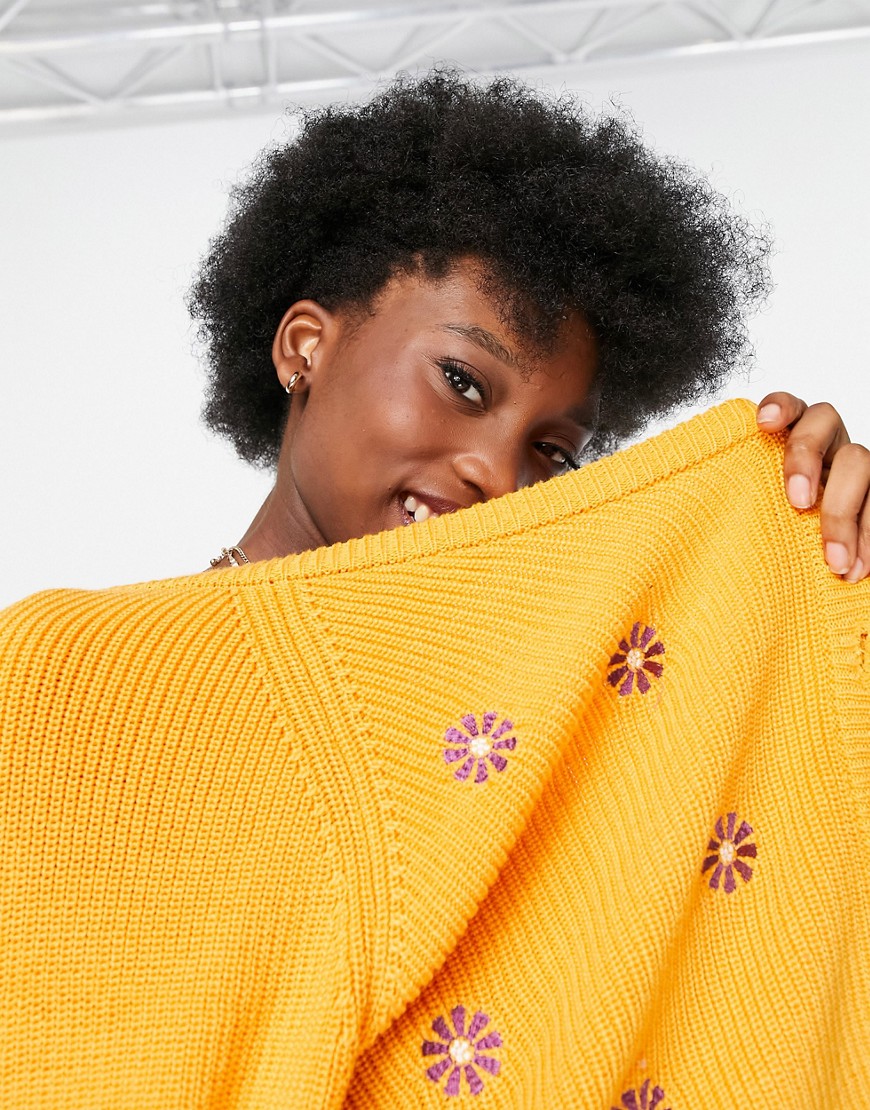 Daisy Street pomarańczowy kardigan oversize z haftem w stokrotki 36