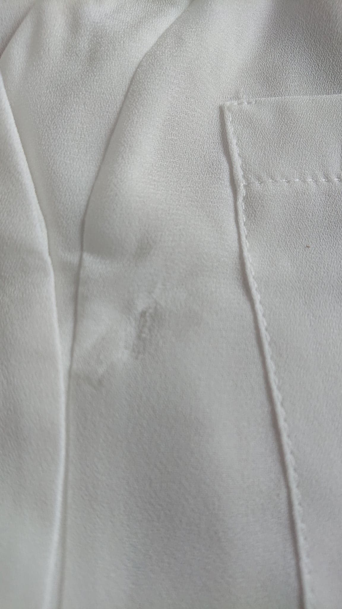 - DEFEKT: z przodu u góry z lewej strony skaza na materiale, niewielkie zabrudzenie przy dekolcie