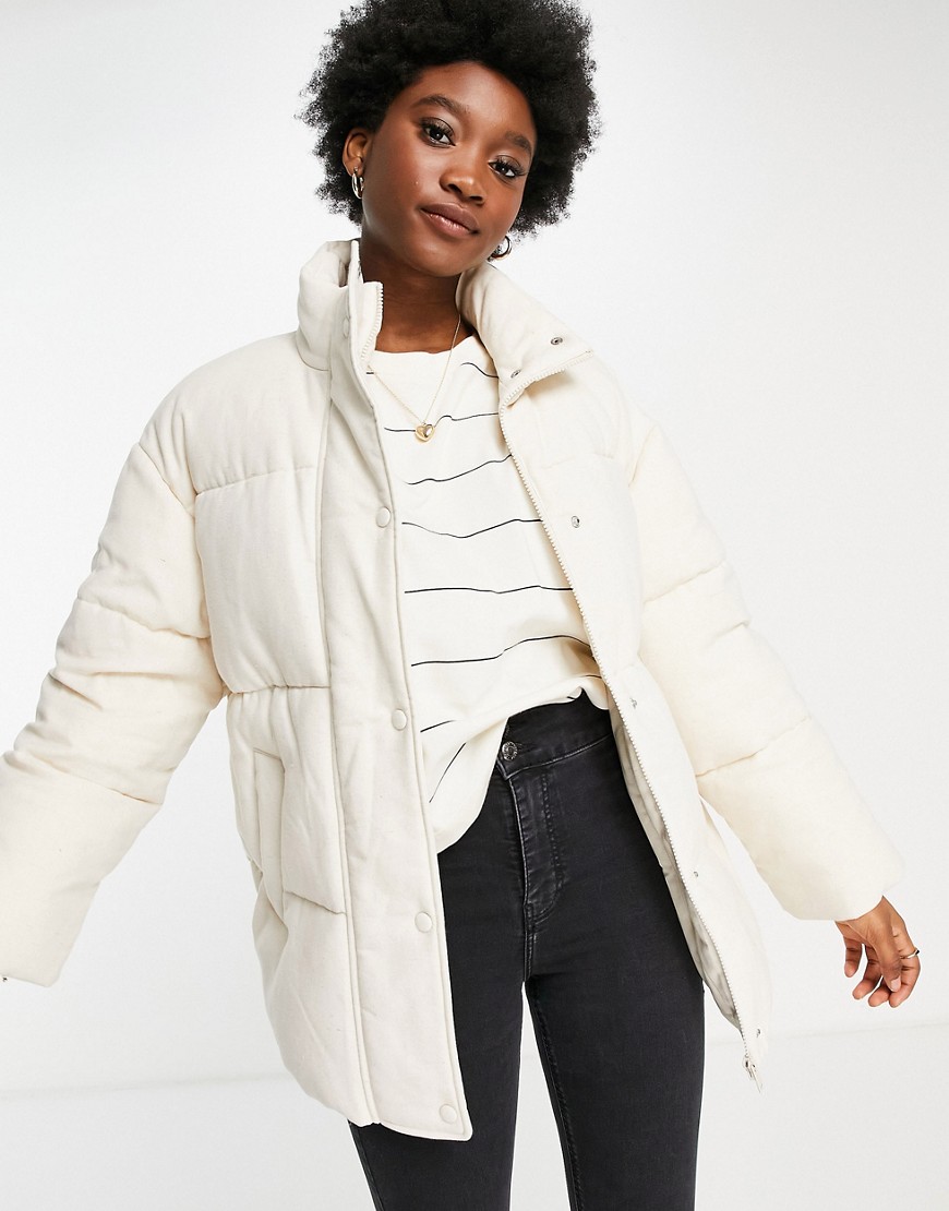 Lekkie i ciepłe wypełnienie syntetycznePodszewka: 100% poliester. Część wierzchnia: 71% poliester, 17% wiskoza, 8% len, 4% bawełna.