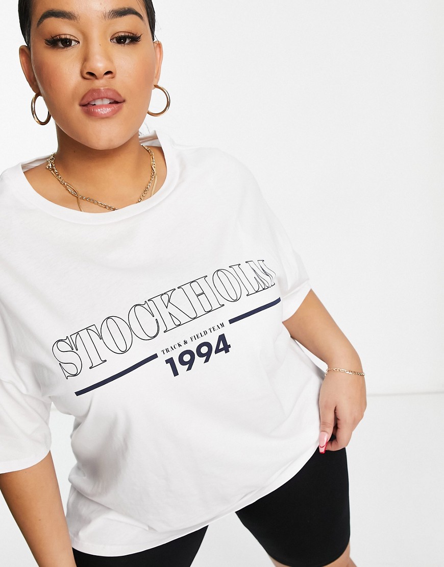 - Napis „Stockholm” na klatce piersiowej
