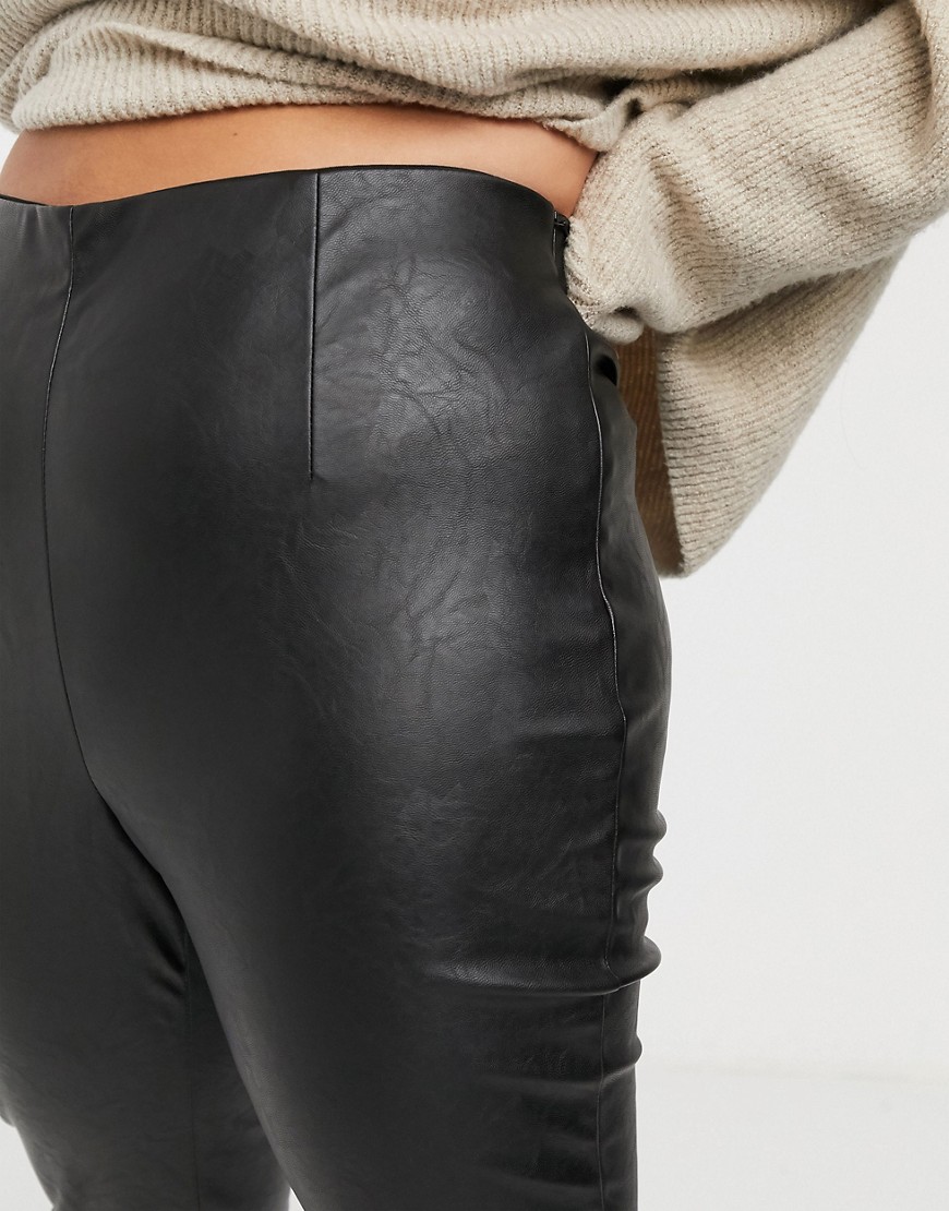 Damskie czarne dopasowane spodnie imitacja skóry 50