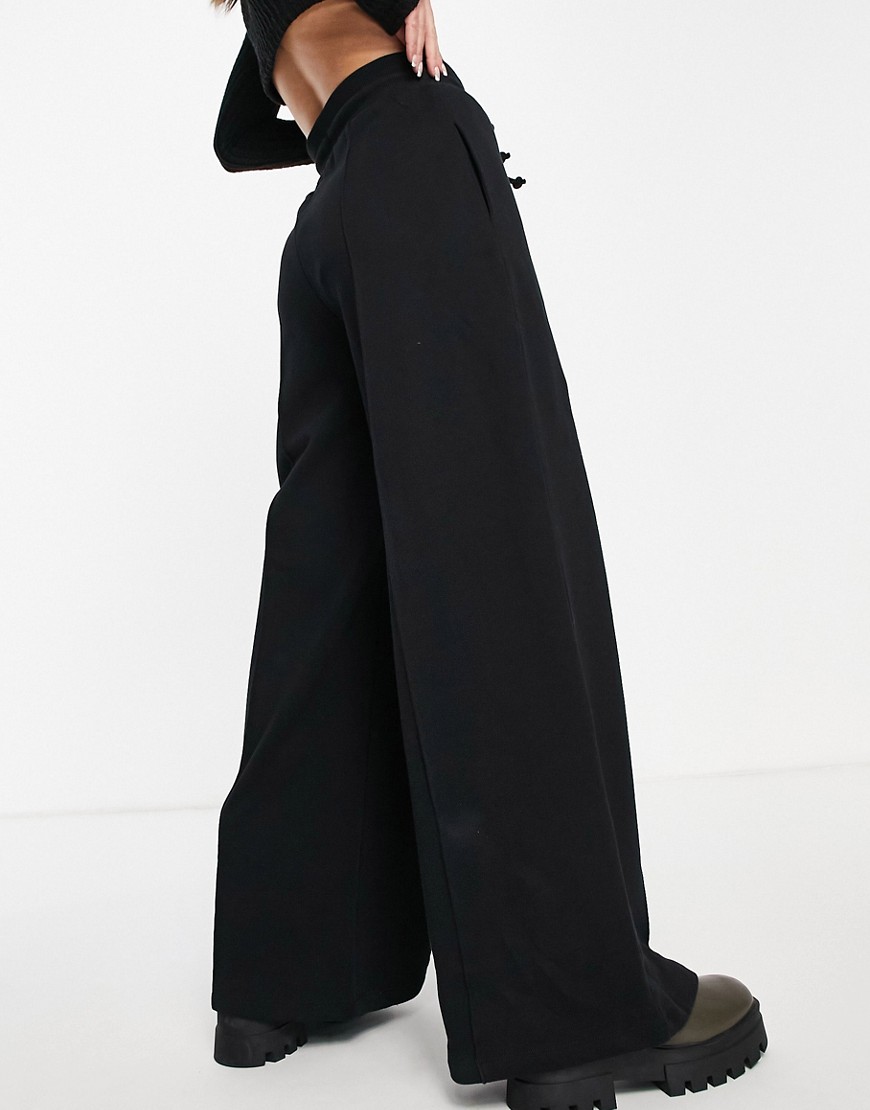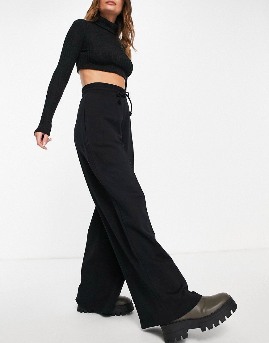 Damskie czarne spodnie dresowe szerokie nogawki wide leg 42