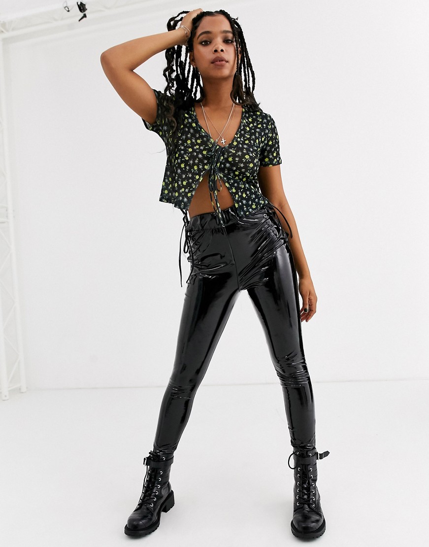 damskie czarne spodnie ze sztucznej skóry 36