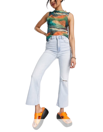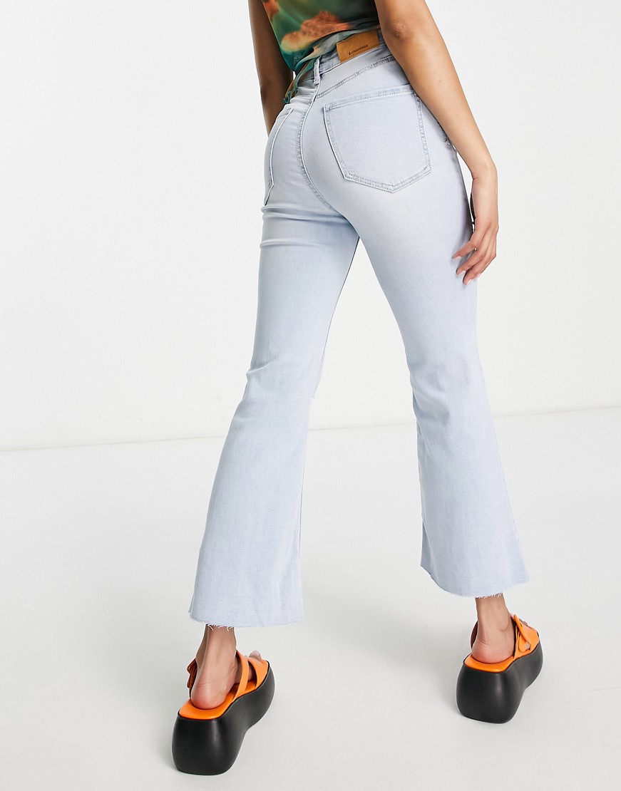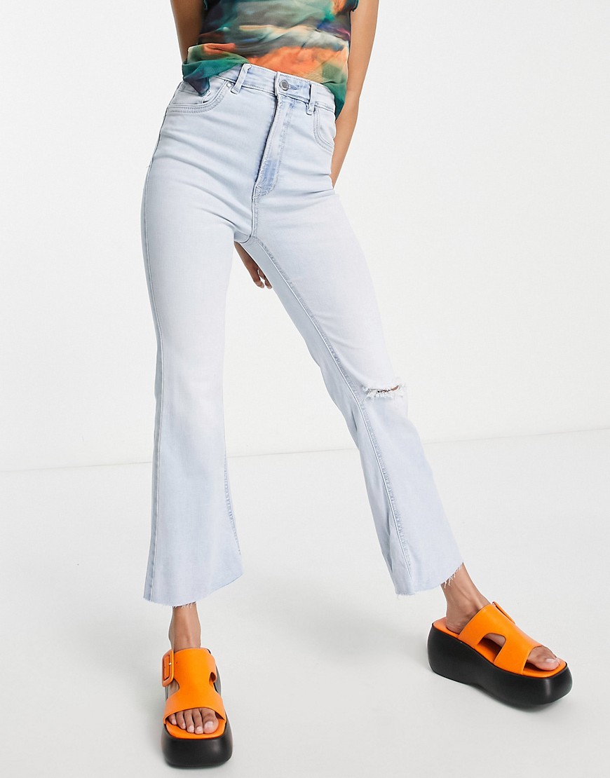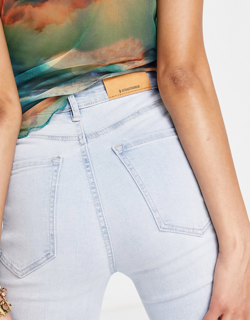 Damskie niebieskie spodnie jeansowe dzwony XXL