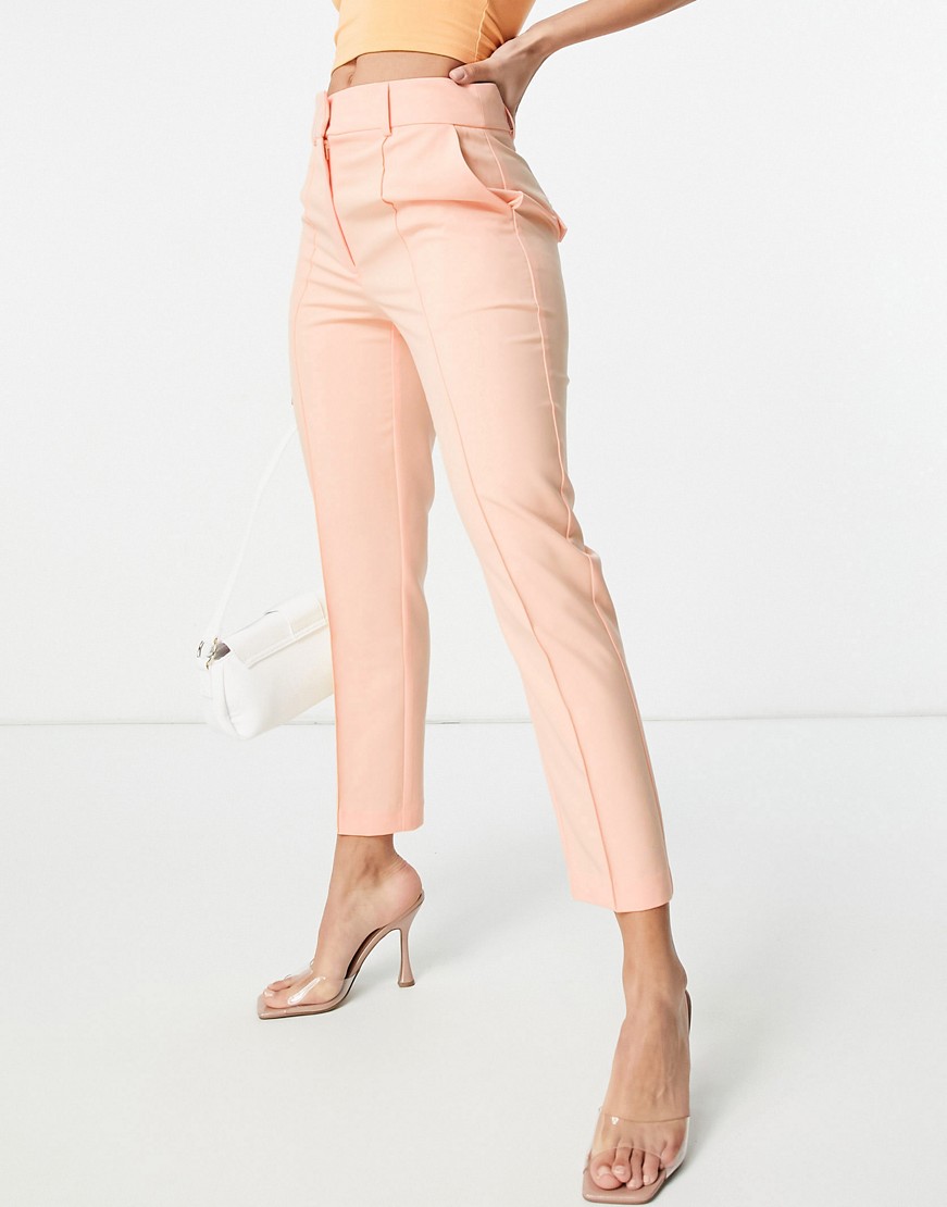 Damskie pomarańczowe spodnie garniturowe cygaretki 38