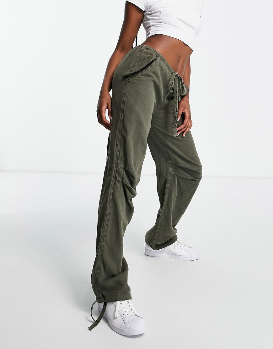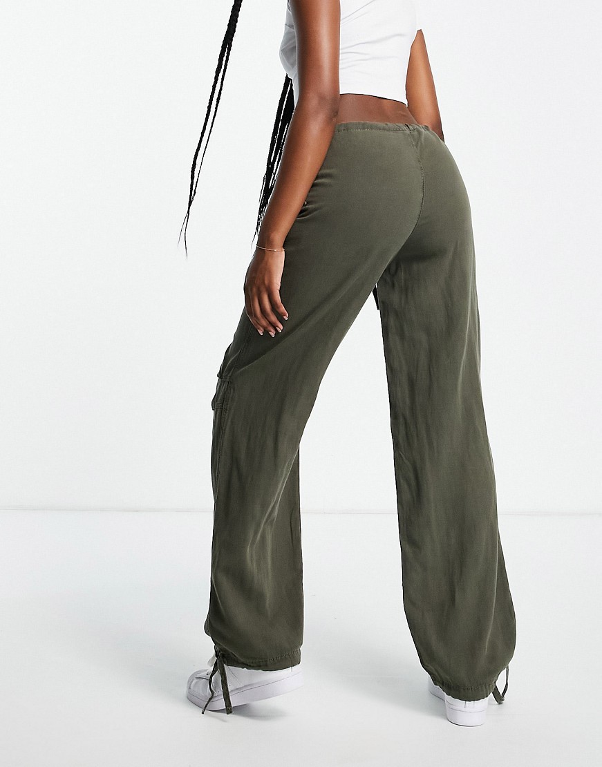 Damskie szerokie spodnie materiałowe khaki L