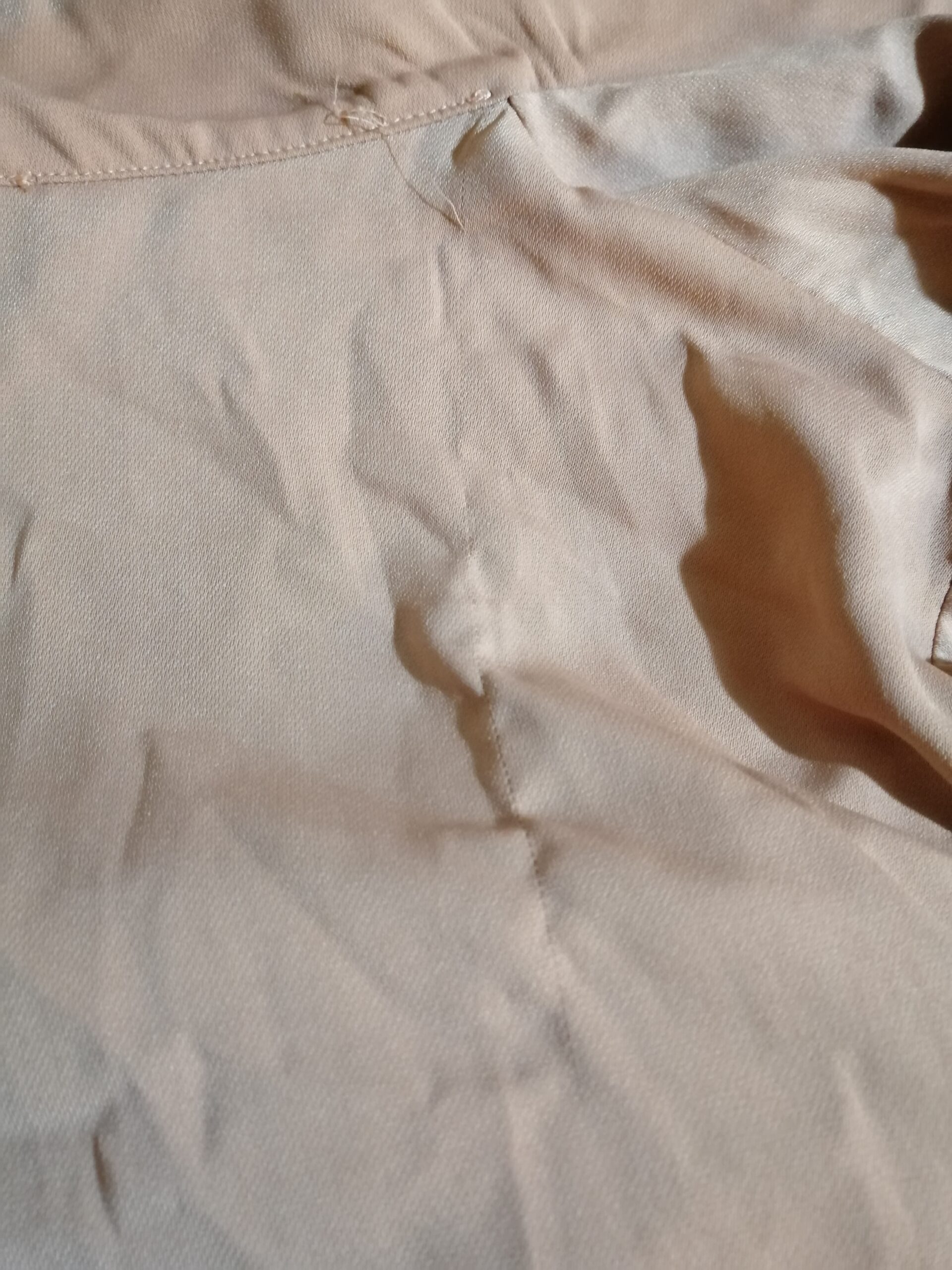 - Defekt: zaciągnięty materiał pod kołnierzem na karku (zdjęcie)