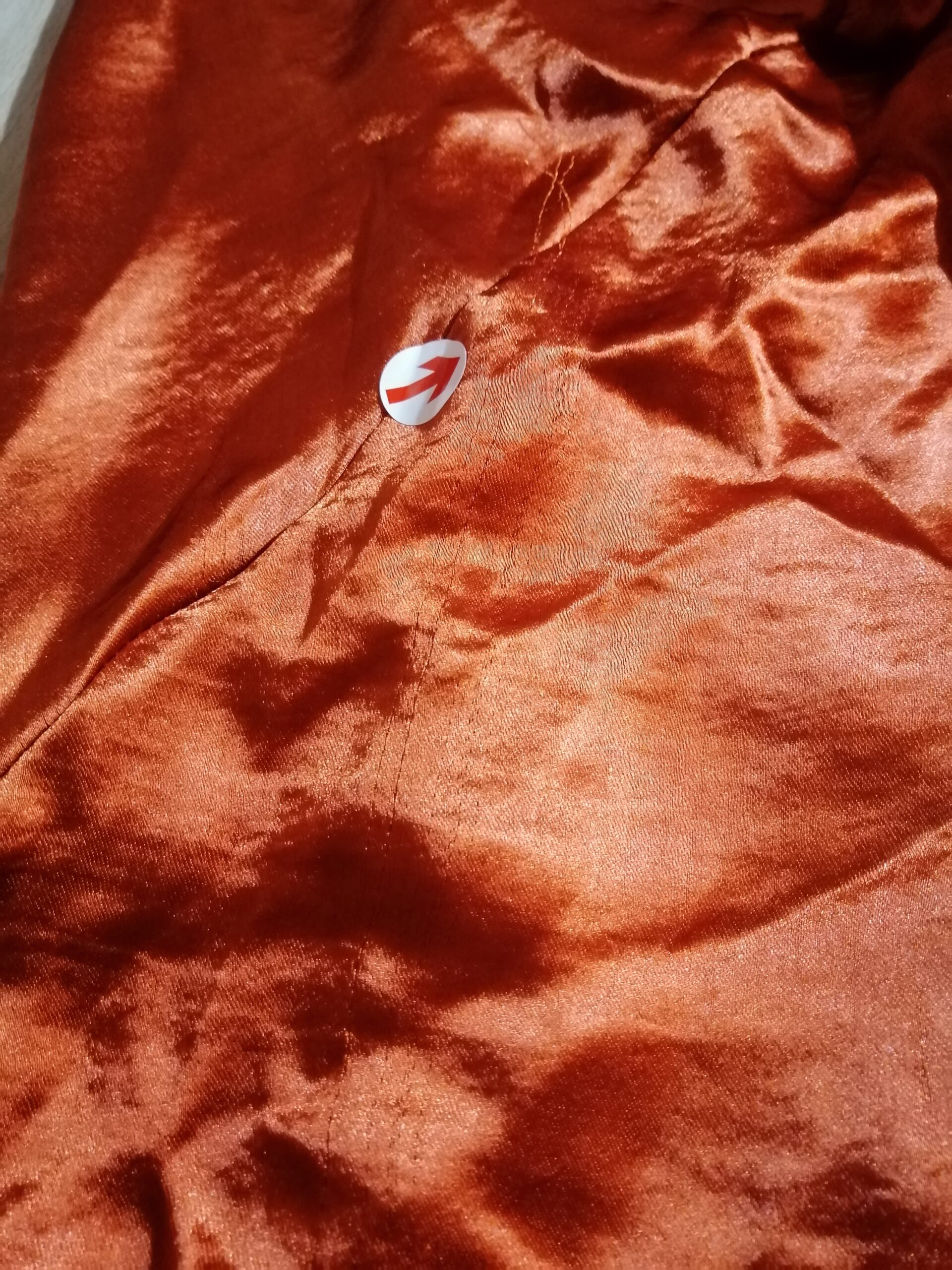 - Defekt: zaciągnięty materiał na plecach po prawej stronie (zdjęcie)