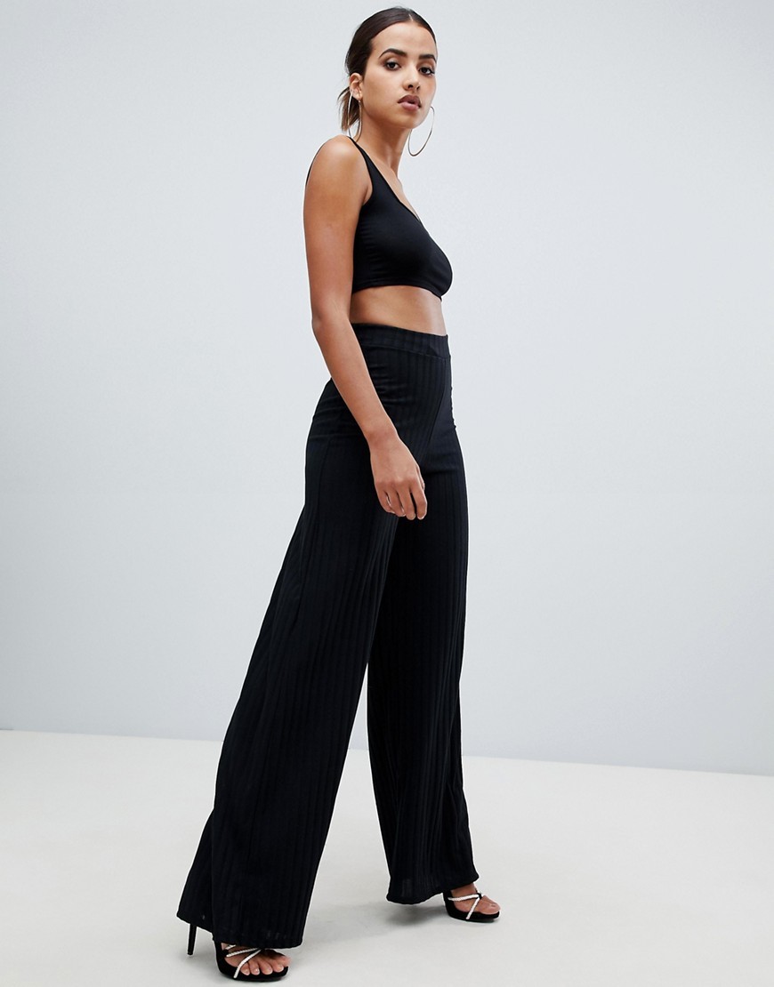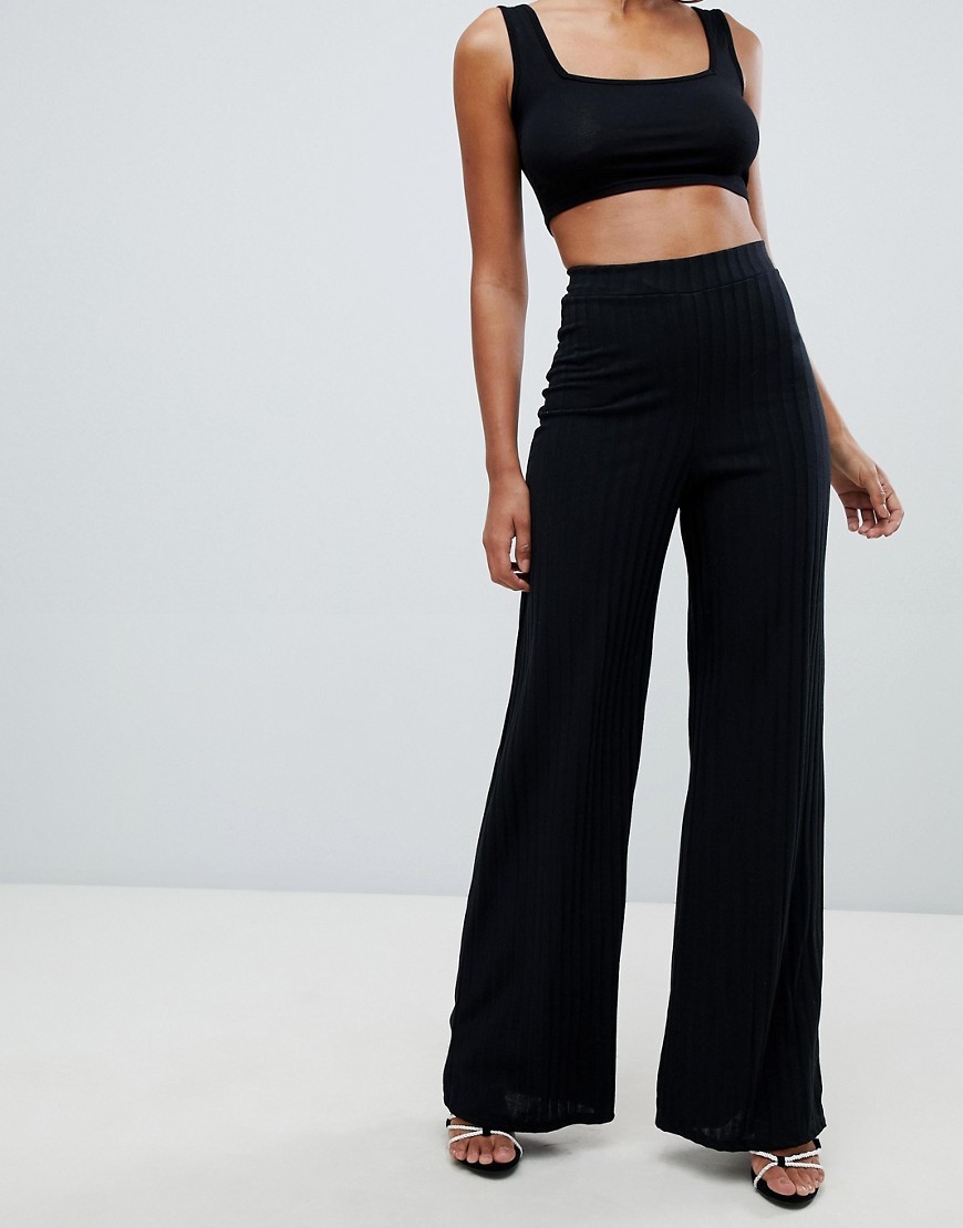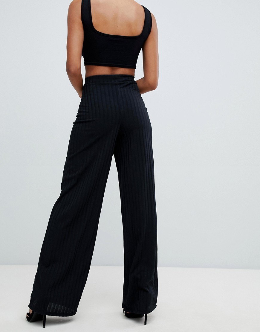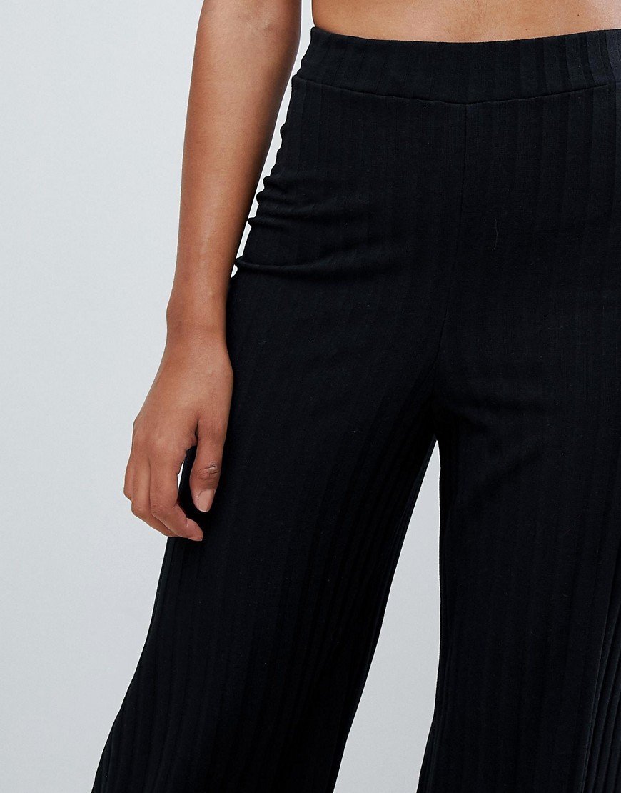 Długie Spodnie z szeroką nogawką prążkowane żebrowane S 36