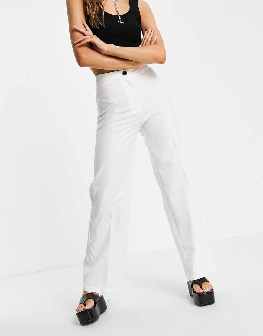 Dopasowane białe spodnie dad o luźnym kroju 38