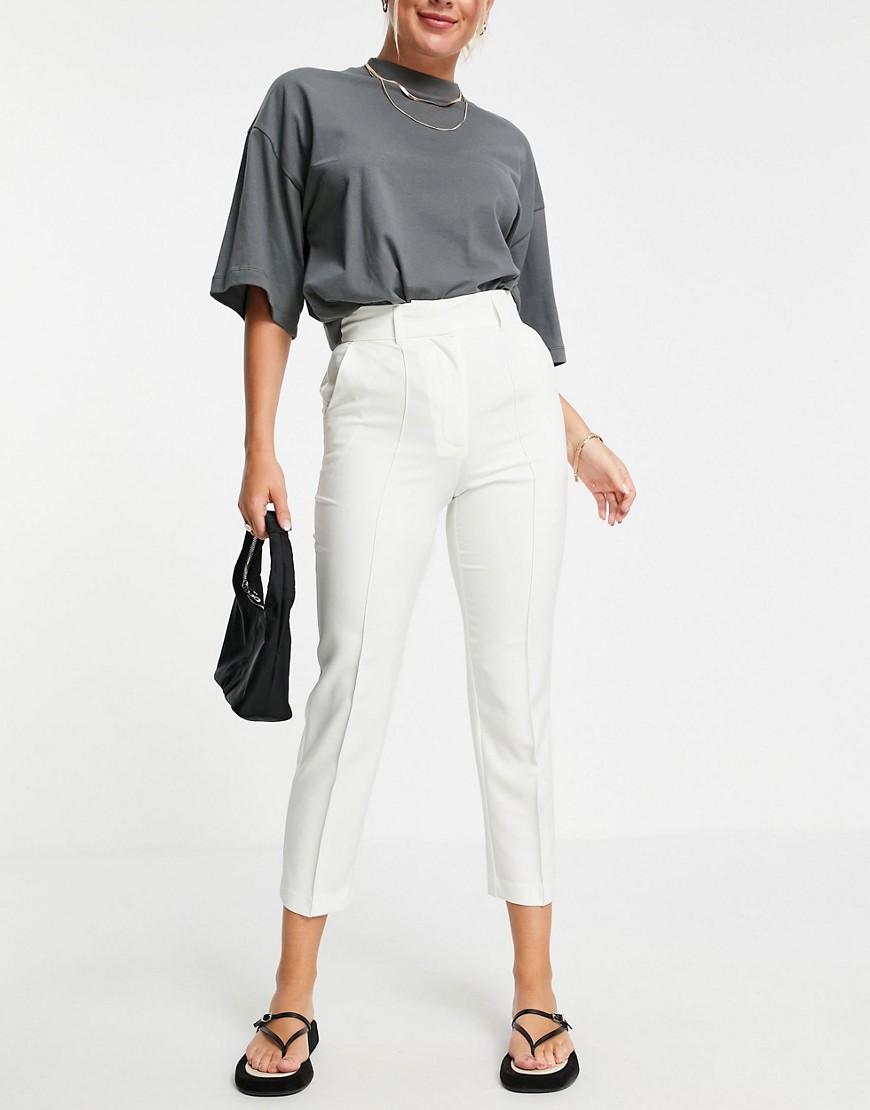 Dopasowane eleganckie spodnie cygaretki garniturowe ivory defekt 42