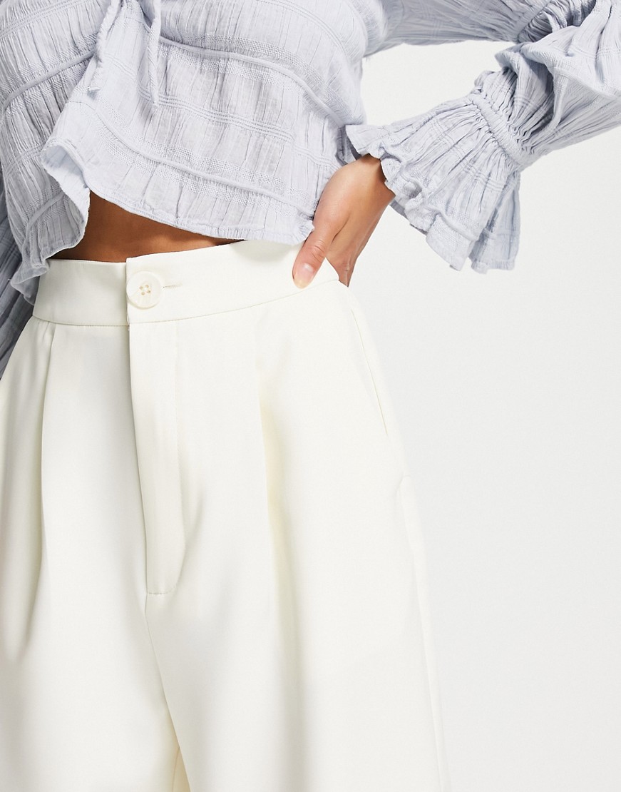 Dopasowane spodnie z szerokimi nogawkami białe defekt 36