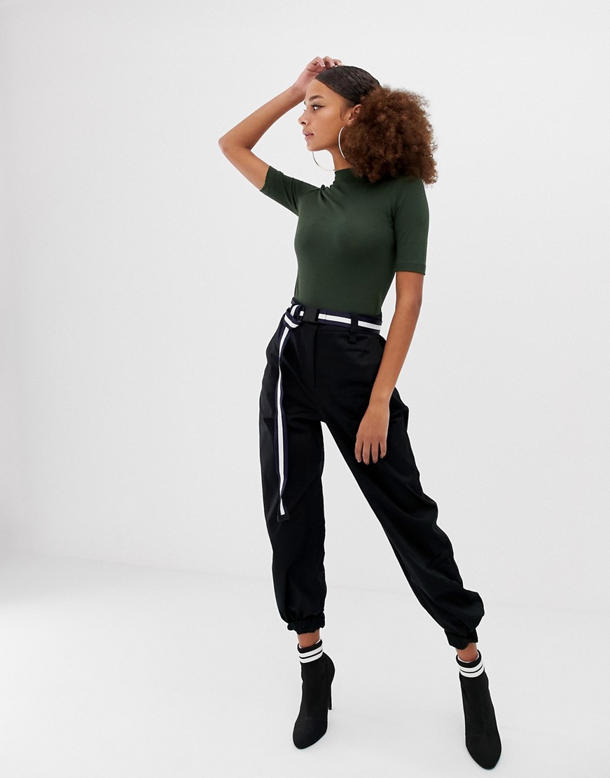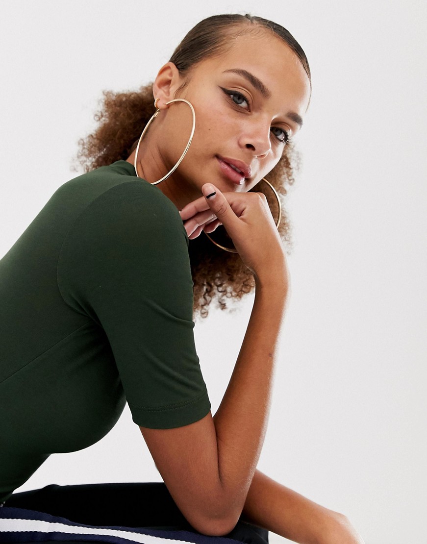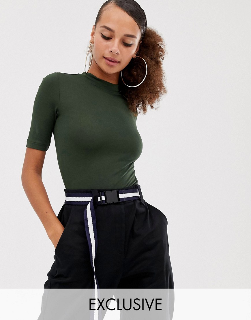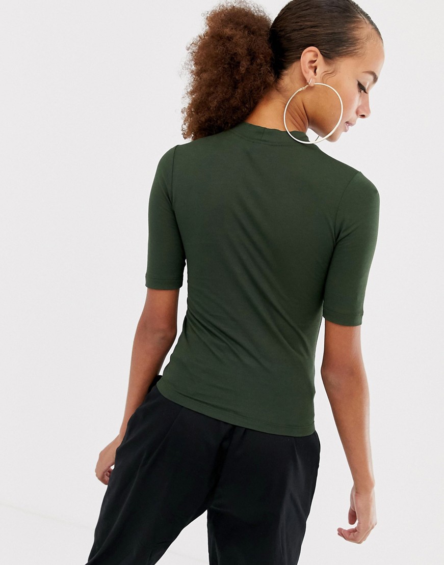 Dopasowany t-shirt z krótkim rękawem khaki 36