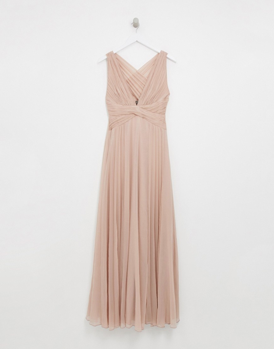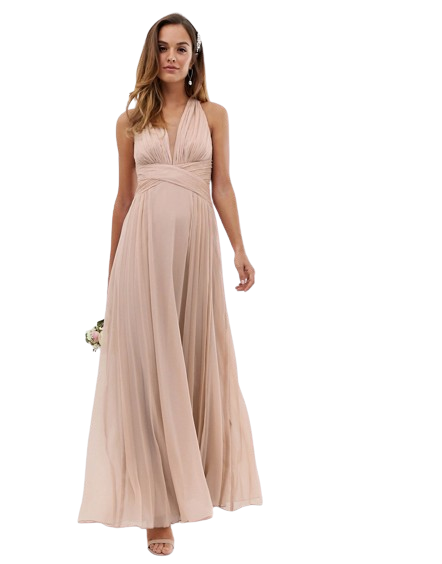 Drapowana sukienka maxi dla druhny beżowa używana 36