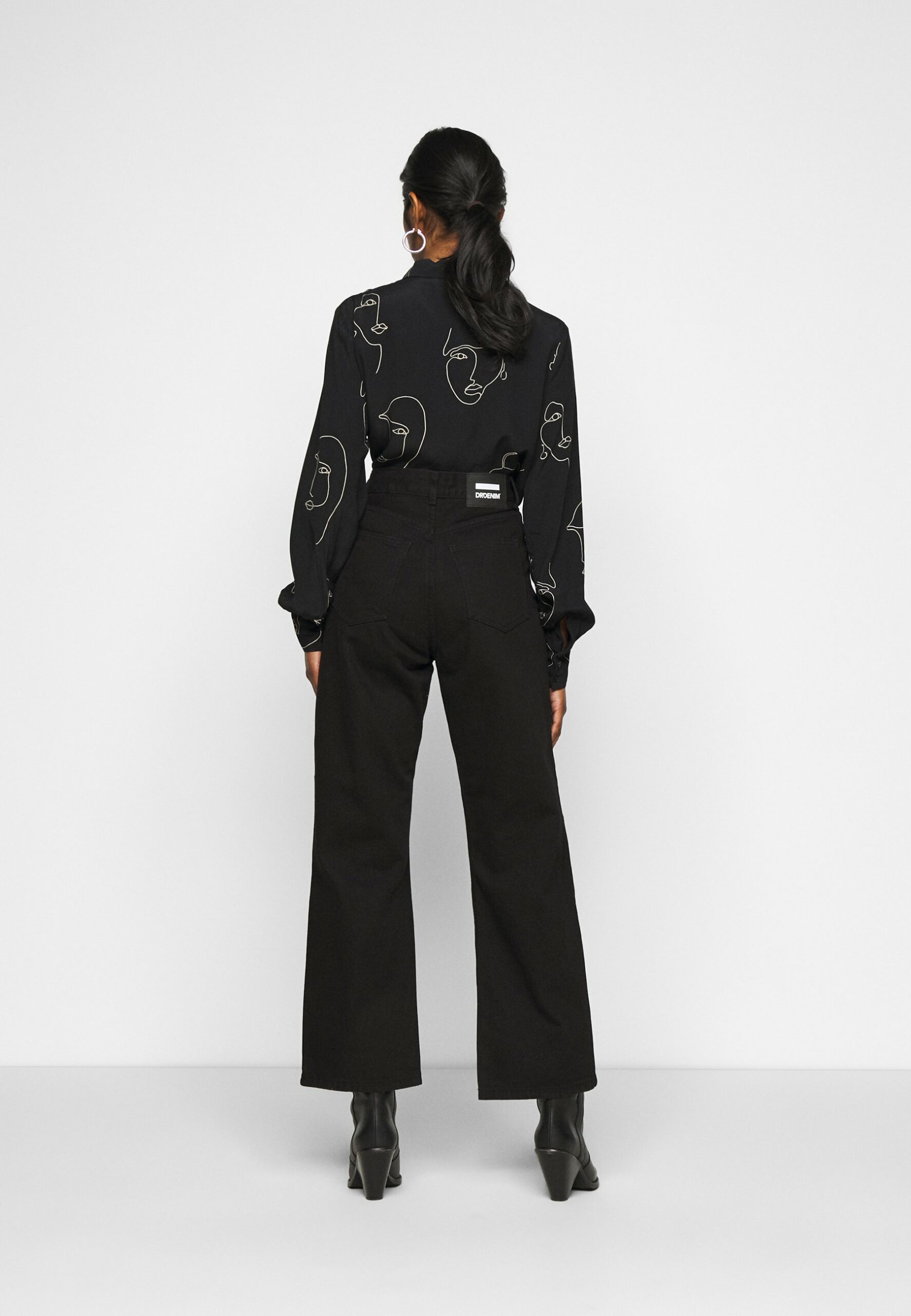 DrDenim damskie czarne spodnie z szerokimi nogawkami W28
