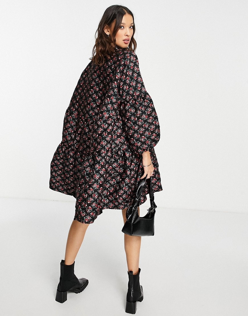 - Strukturalna tkanina z wplecionym skomplikowanym wzorem w róże