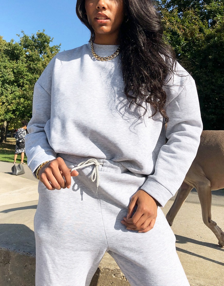 Dres z bluzą i joggersami oversize w szarym melanżowym kolorze 36