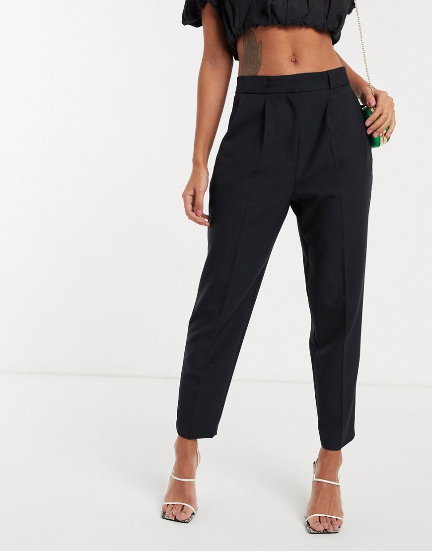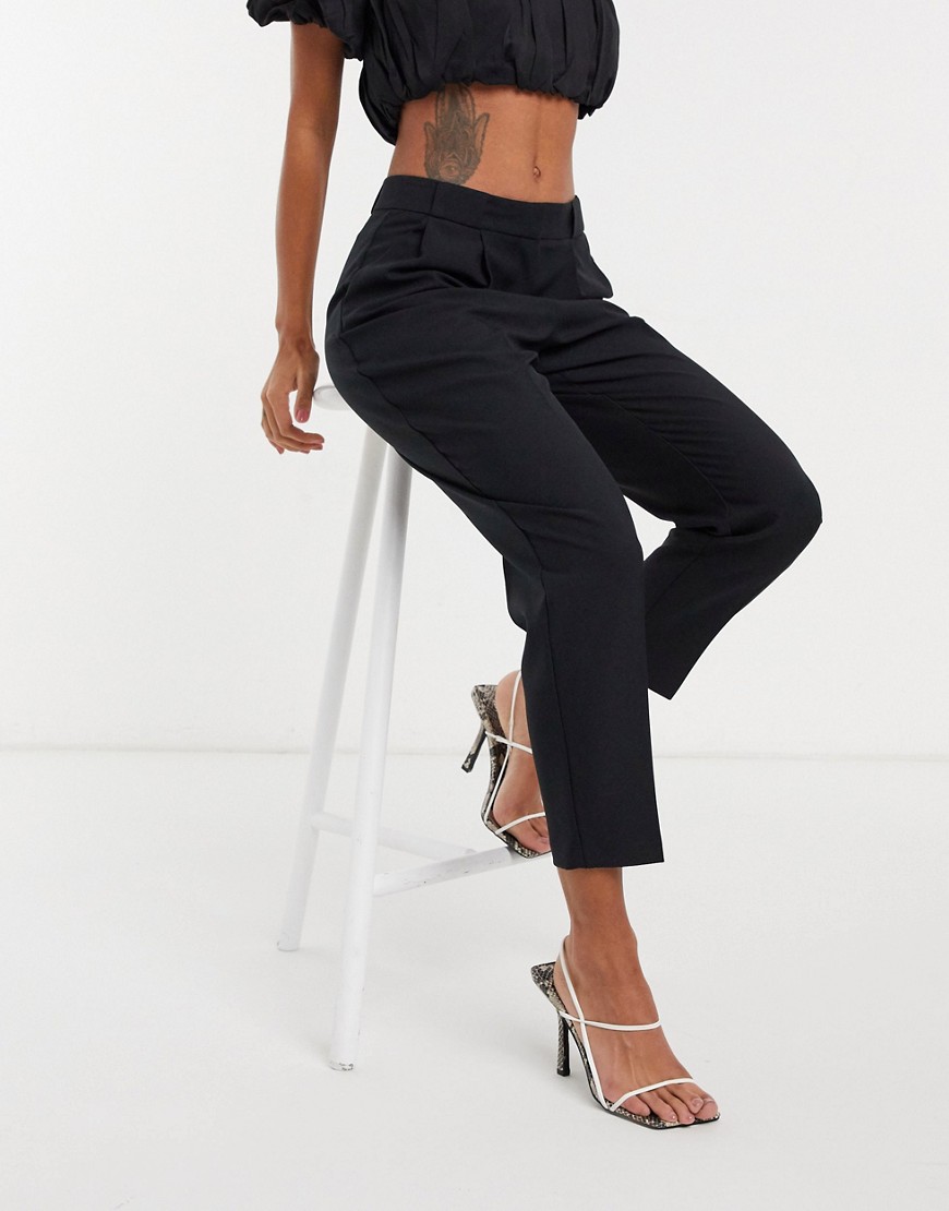 Eleganckie czarne damskie spodnie materiałowe zaszewki 36