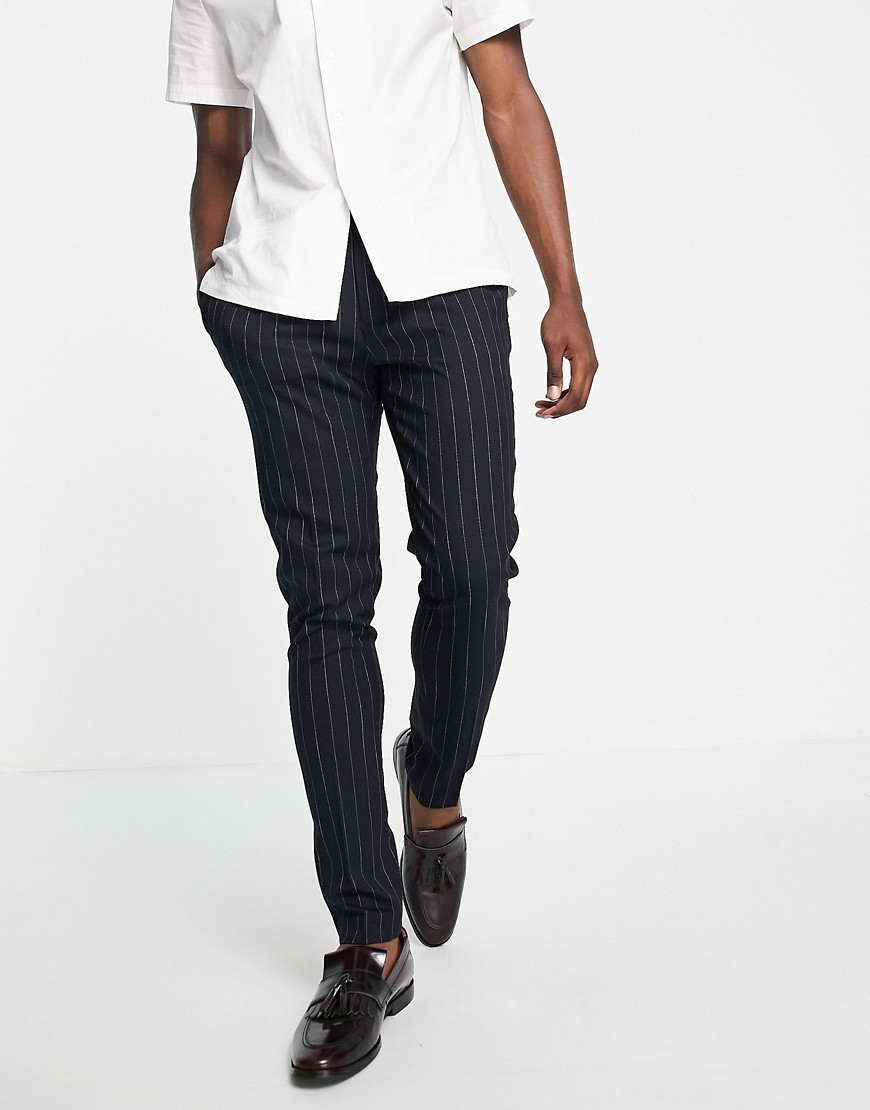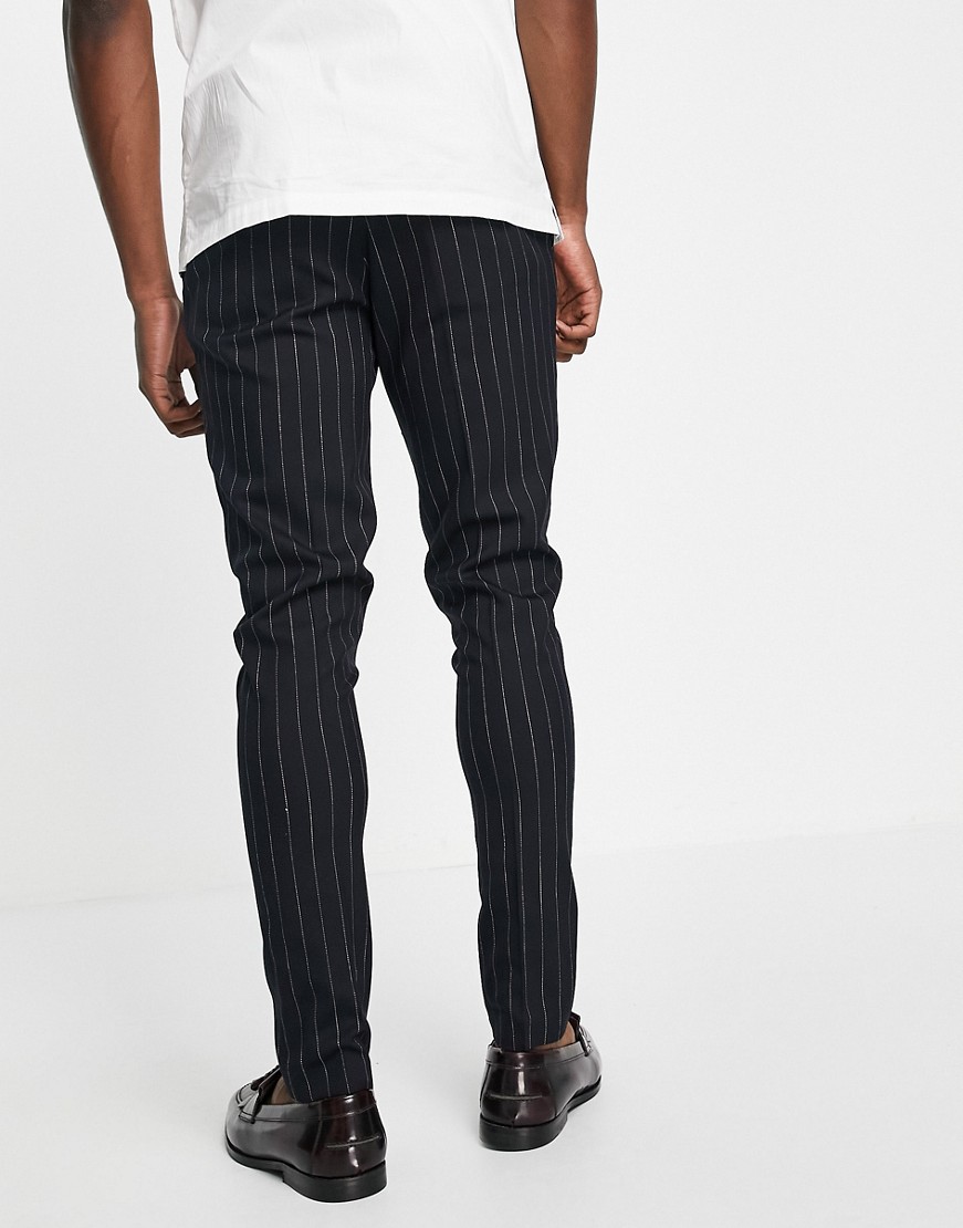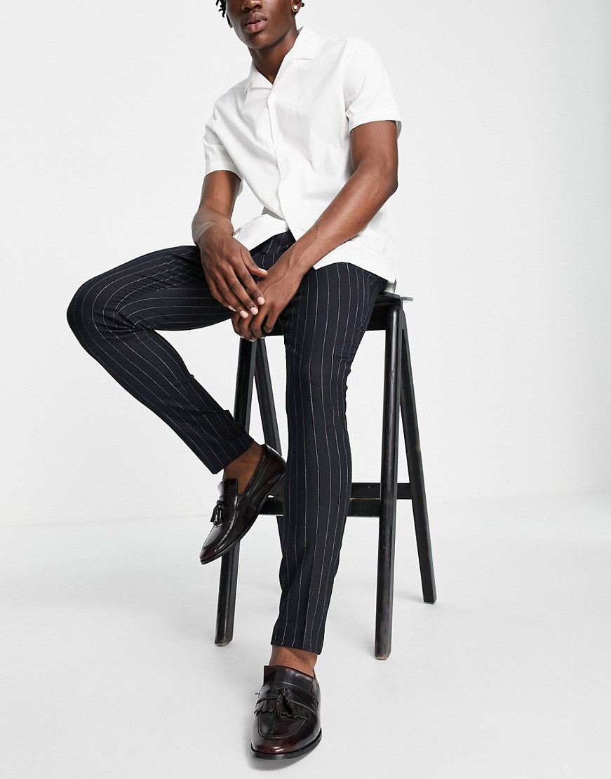 Eleganckie granatowe spodnie ze zwężanymi nogawkami w prążki W34 L32