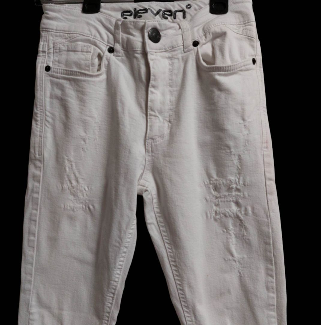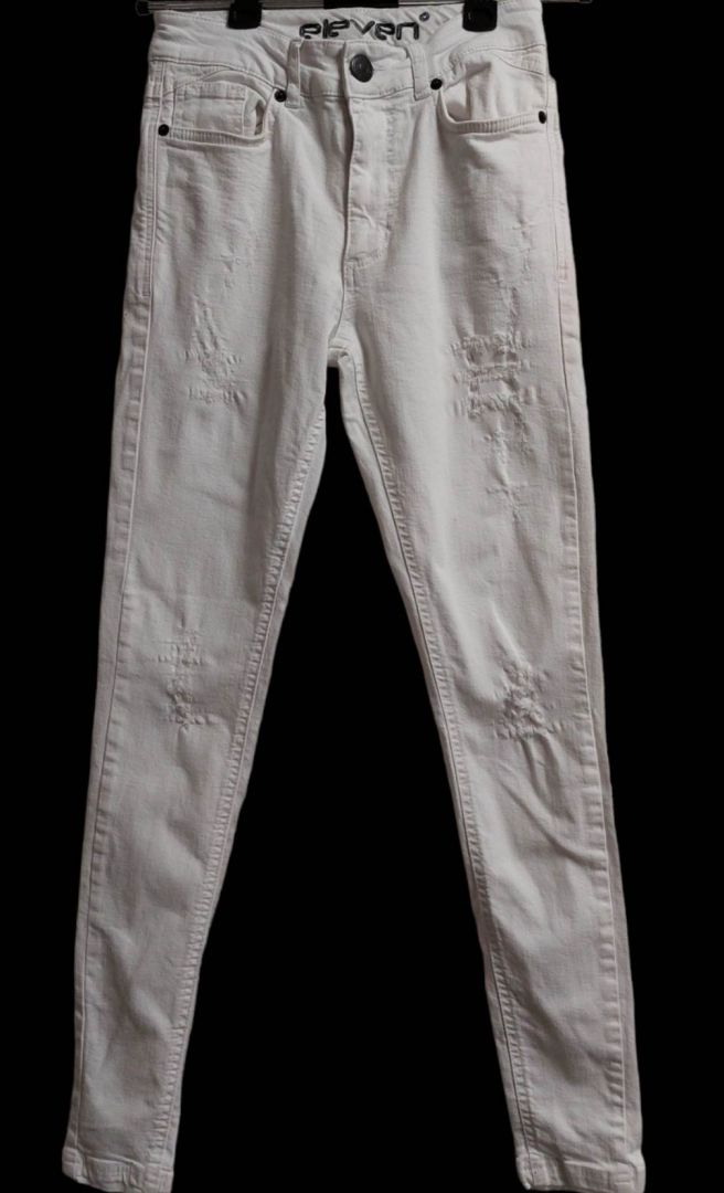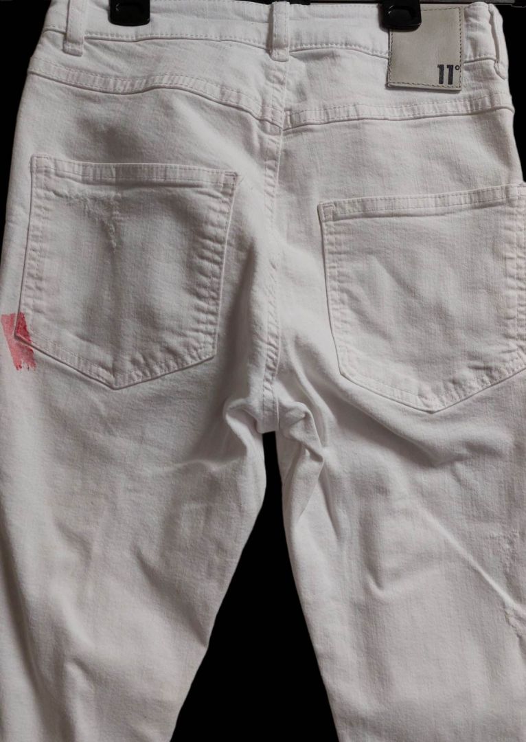 Eleven białe jeansy z przetarciami defekt 28