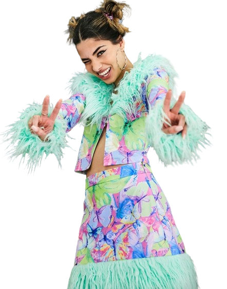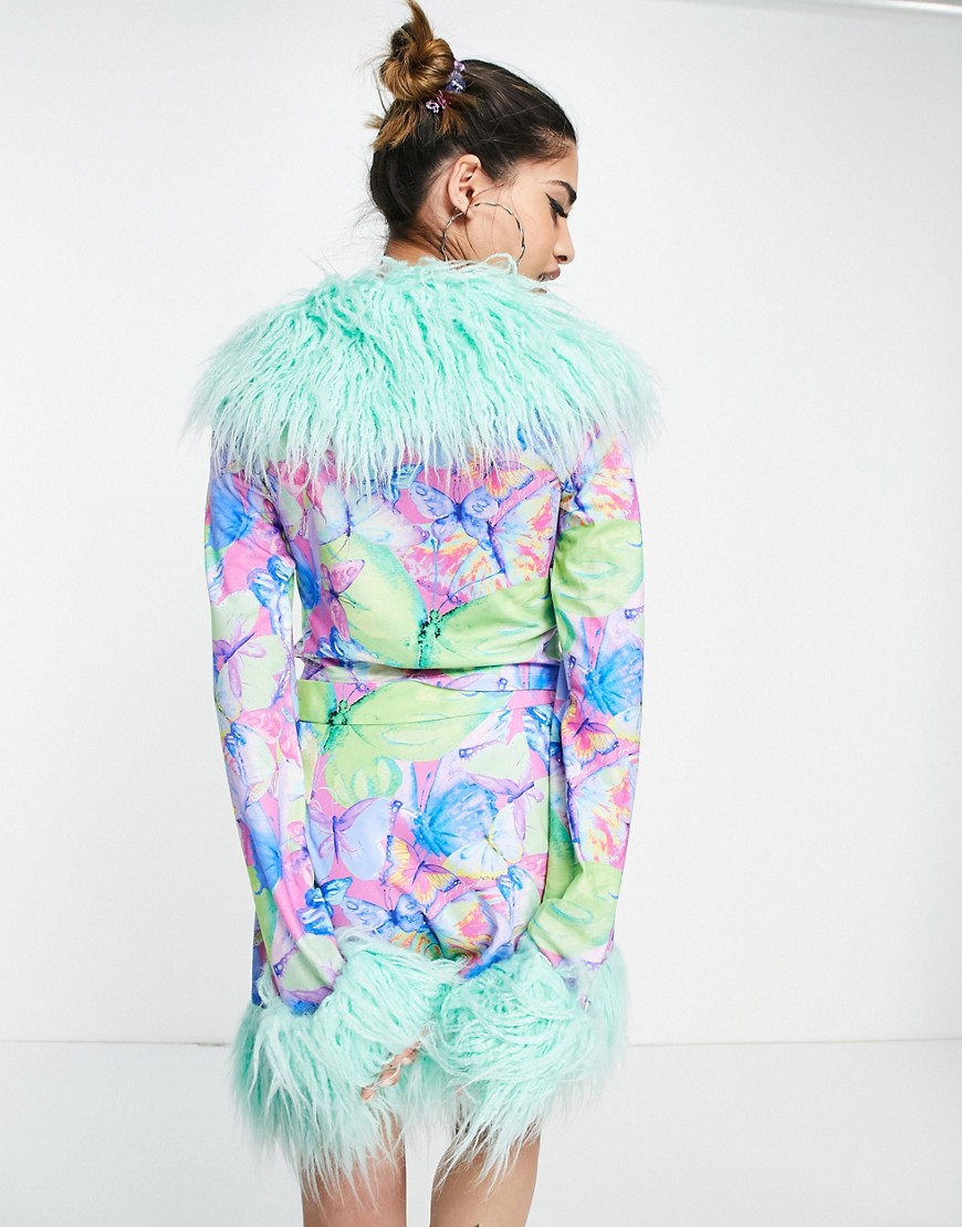 Elsie & Fred krótki kardigan w motyle w stylu retro z futerkiem XXL