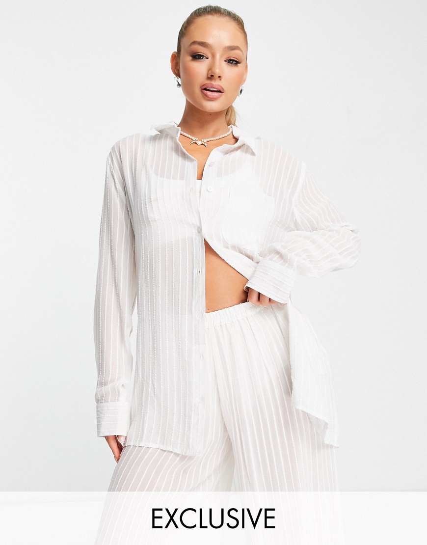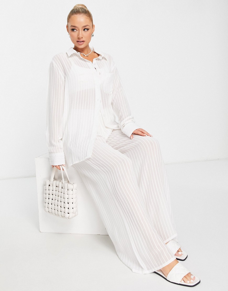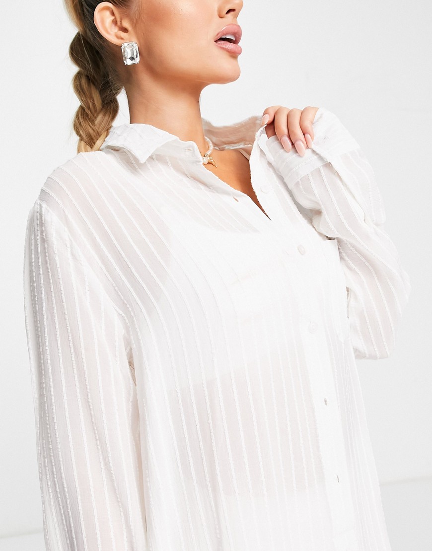 Esmee Biała koszula plażowa z prześwitującego materiału w paski 44