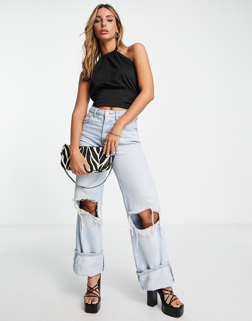 Extro & Vert czarny top z dekoltem typu halter 42