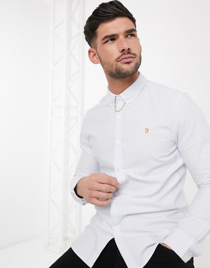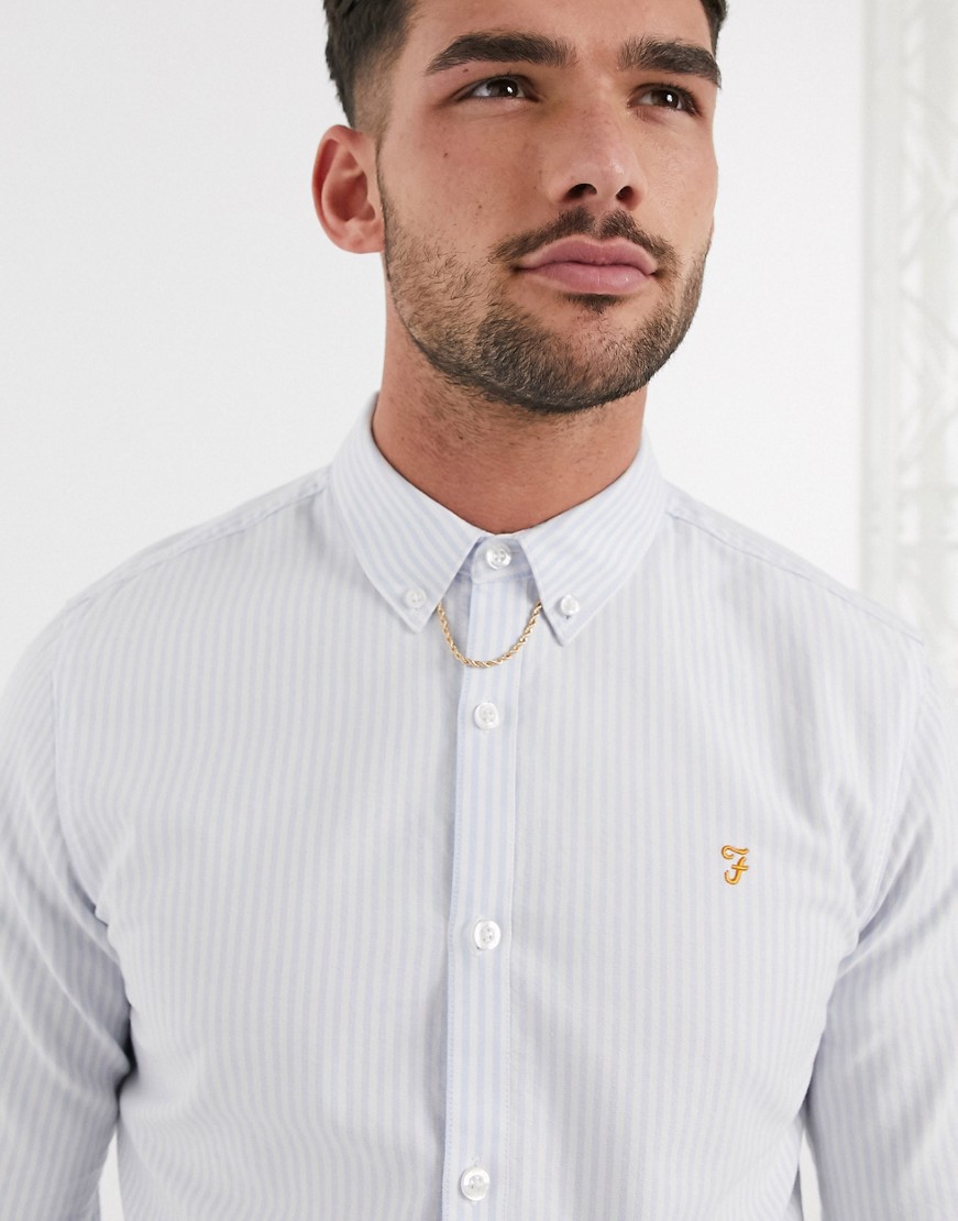 Farah – Brewer – Biało-niebieska koszula w paski S