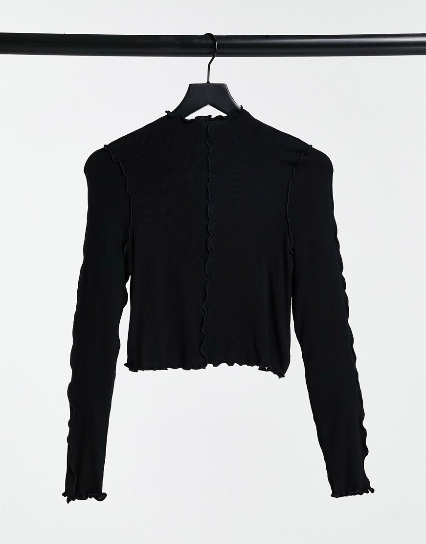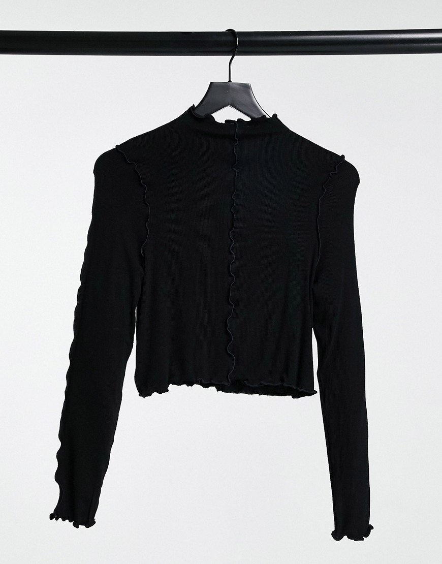 Fashion Union krótki prążkowany golf damski z ozdobnym szwem 38
