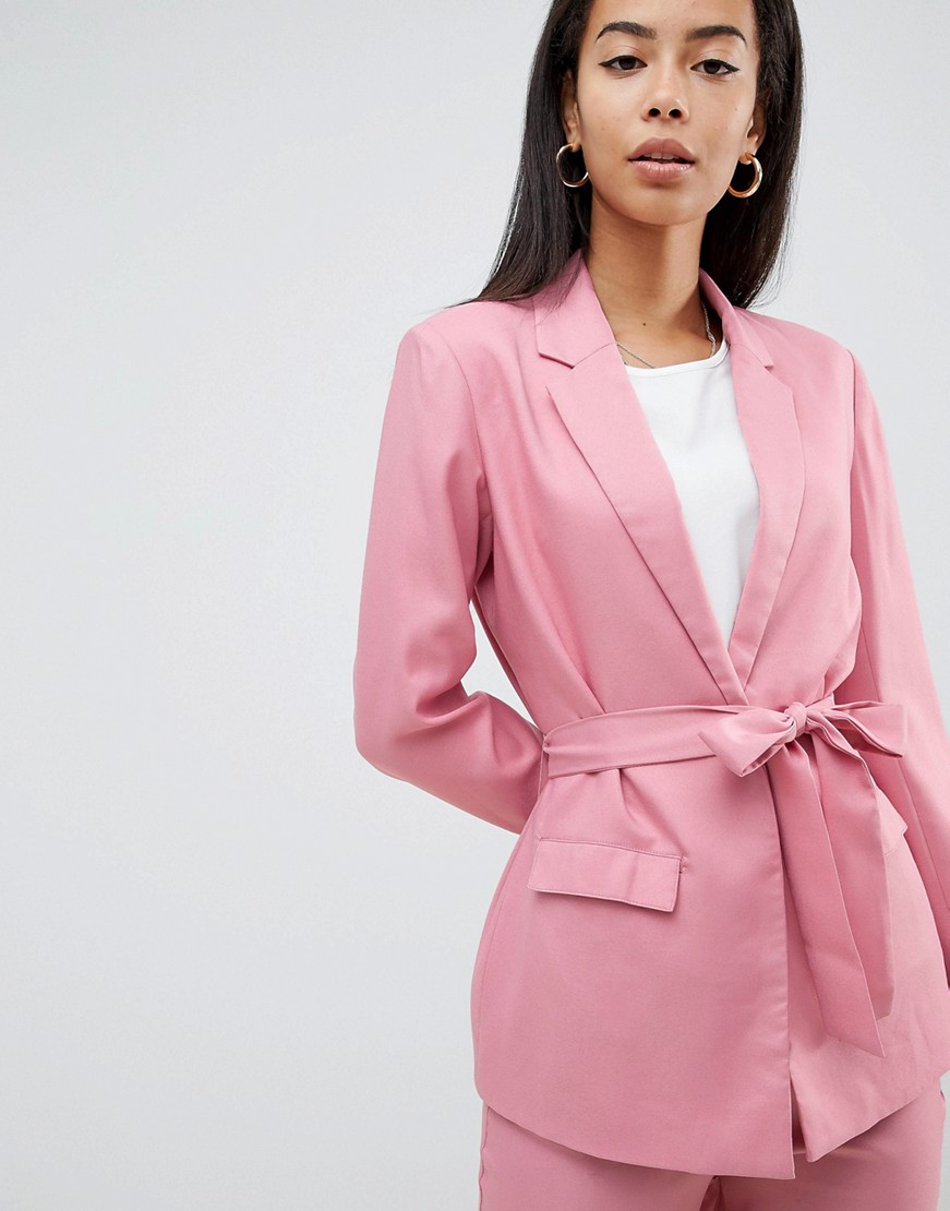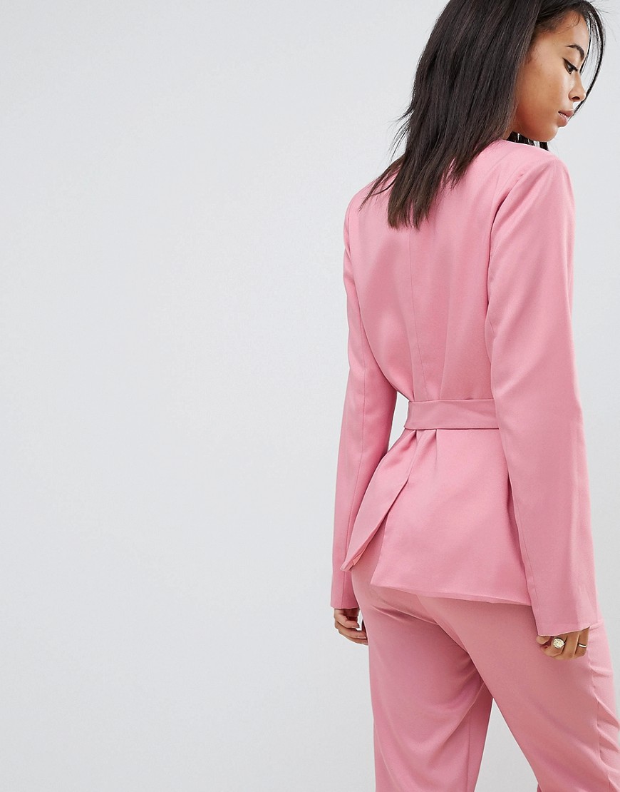 Fashion Union różowa dwuczęściowa marynarka z wiązaniem w talii 38