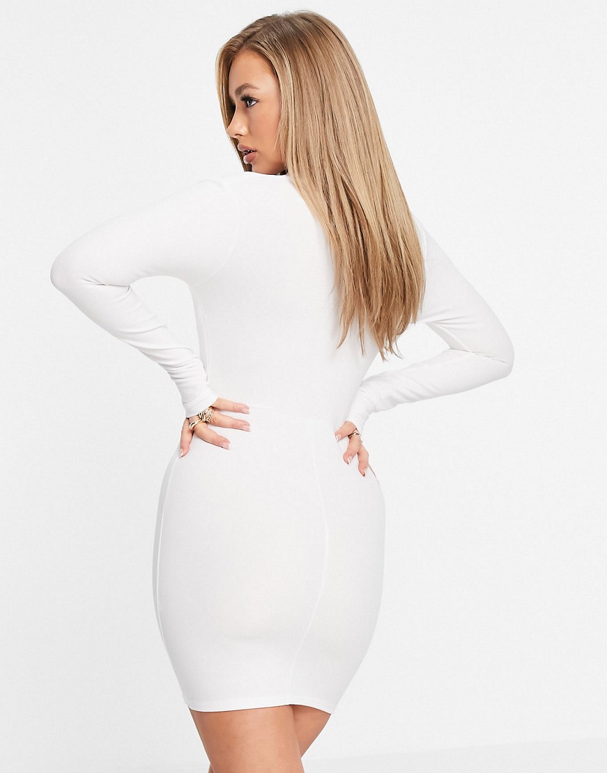 Femme Luxe biała sukienka mini bodycon głęboki dekolt 42