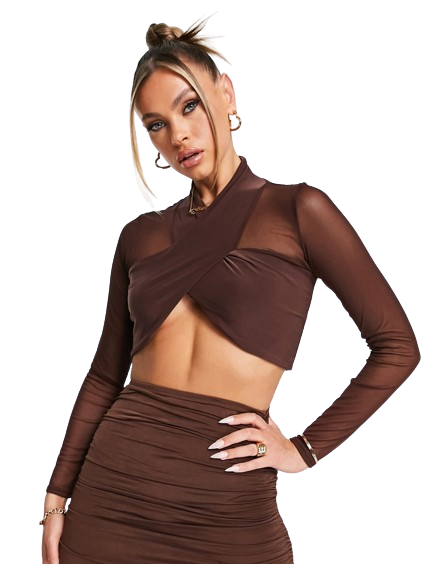 Femme Luxe brązowy krótki top z siateczką 36