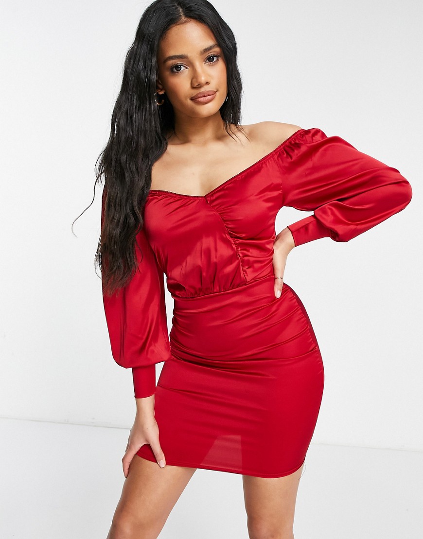 Femme Luxe czerwona satynowa sukienka mini z odkrytymi ramionami 36