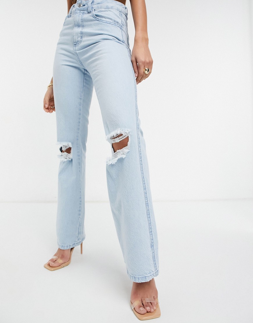 Femme Luxe jasnoniebieskie dzwony flare z podwyższonym stanem przetarte defekt 42