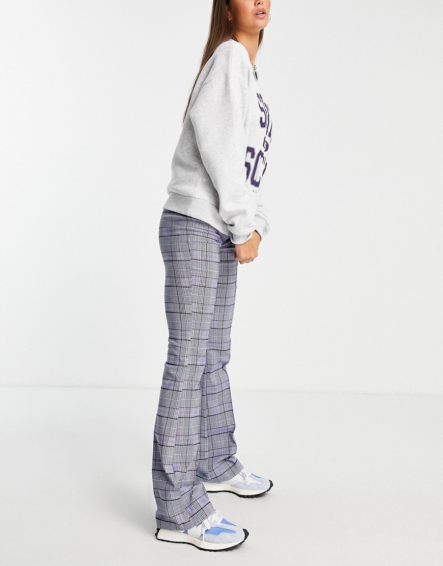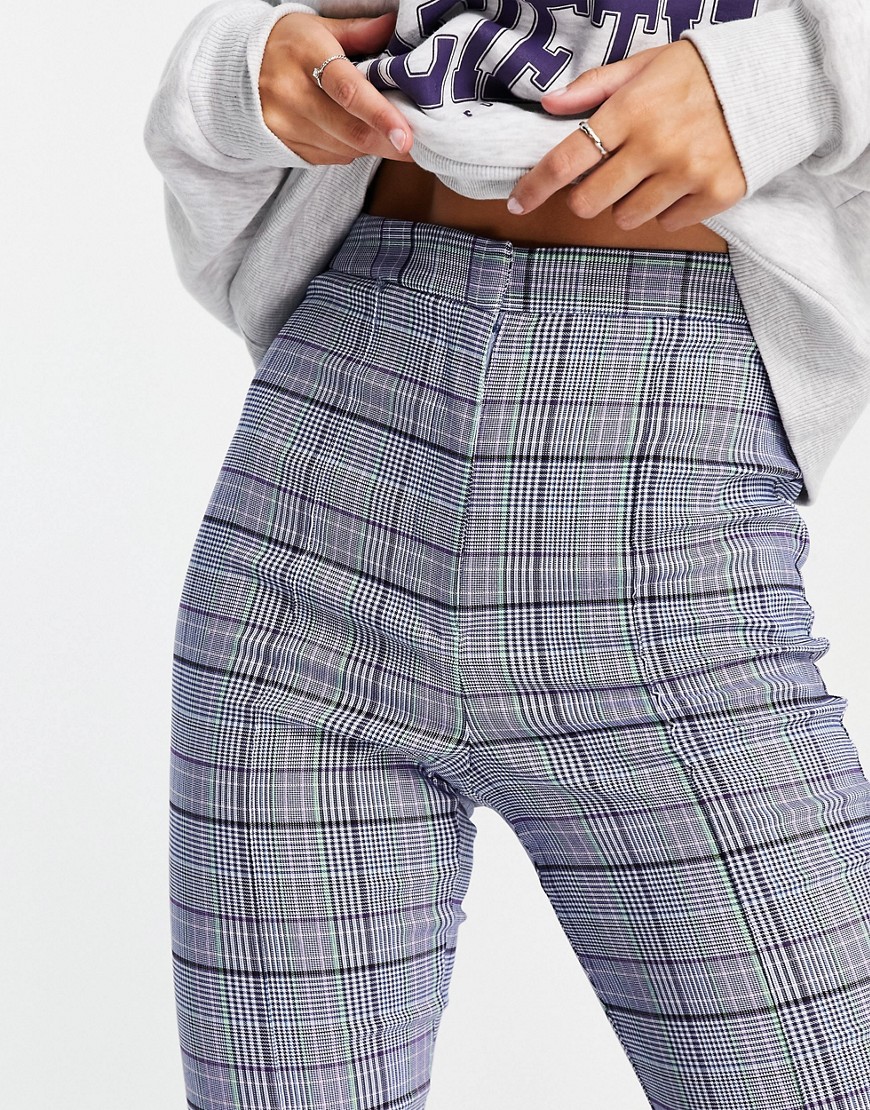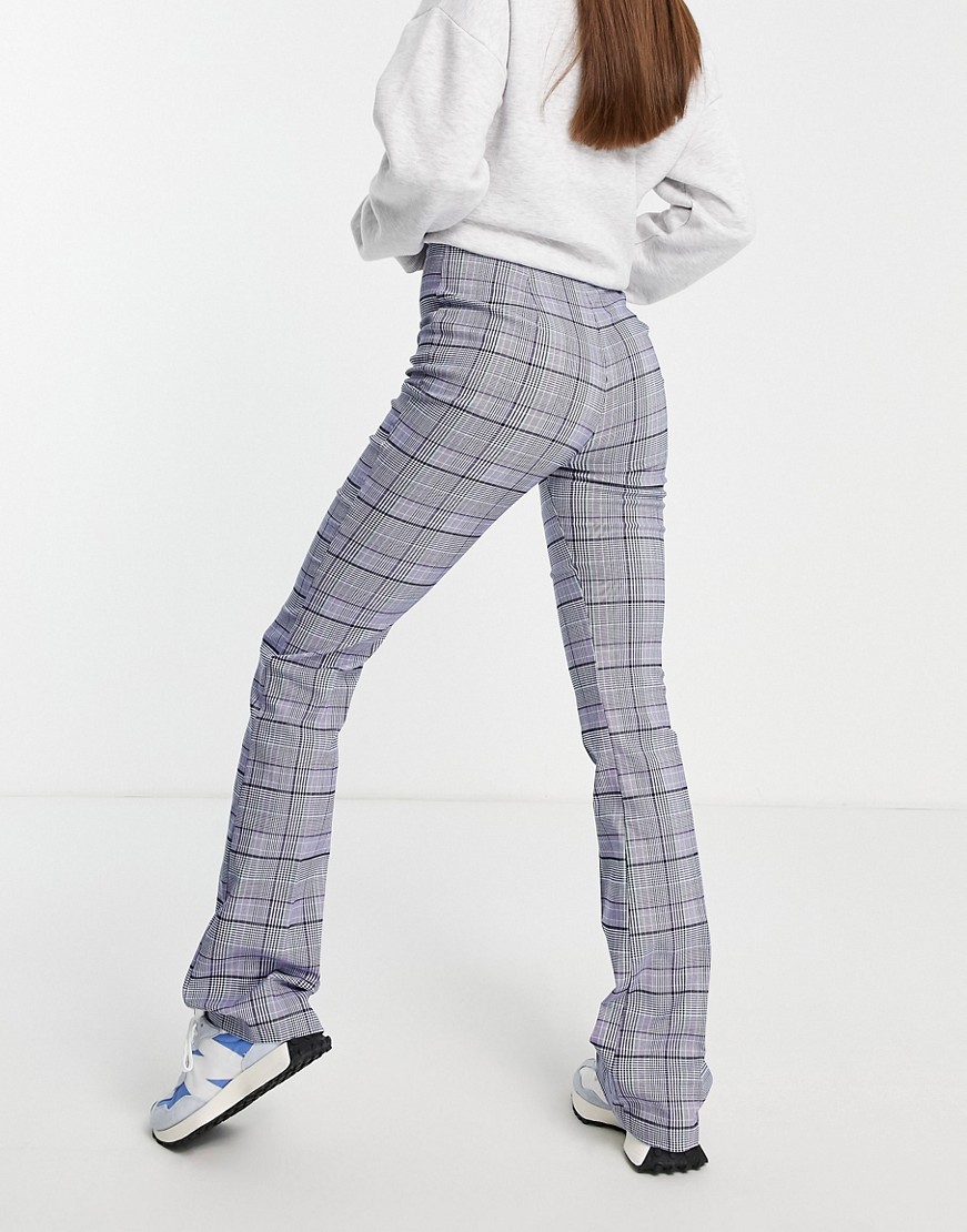 Fioletowe damskie spodnie w kratę dzwony podwyższony stan flare 40