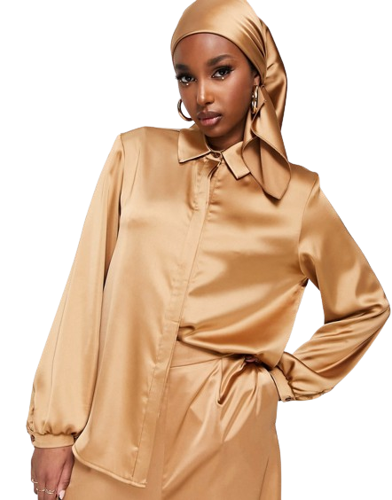 - Satynowy, błyszczący materiał