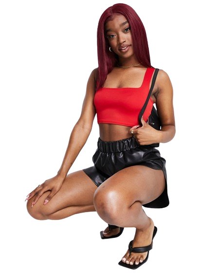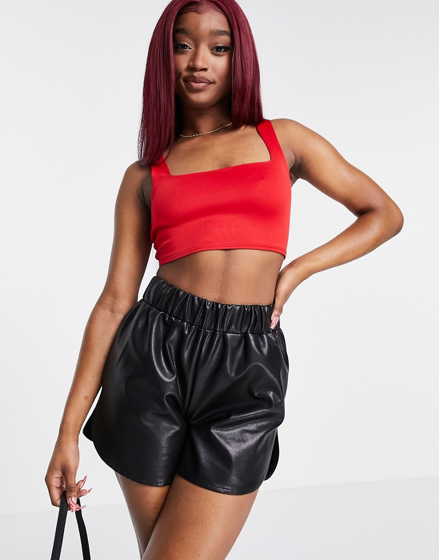 Flounce London czerwony krótki top o dopasowanym kroju z kwadratowym dekoltem 36