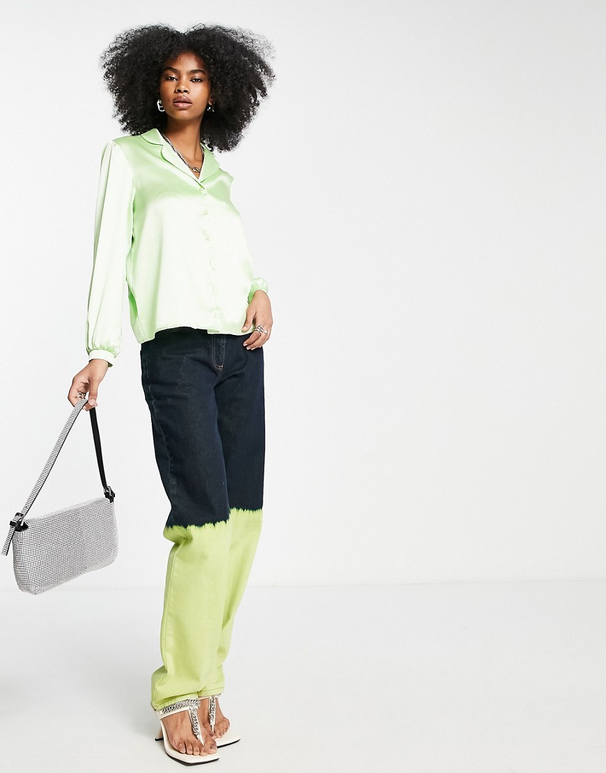 Flounce London zielona satynowa damska koszula oversize 36