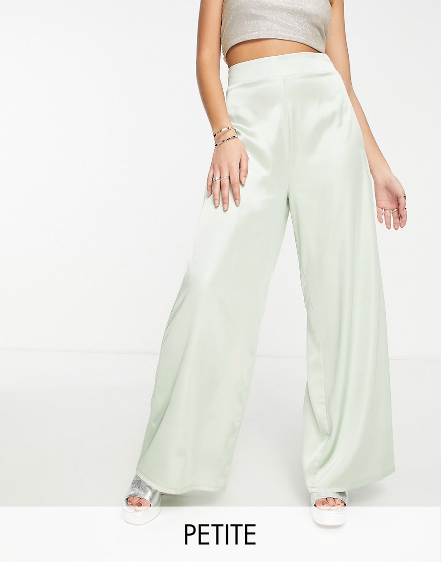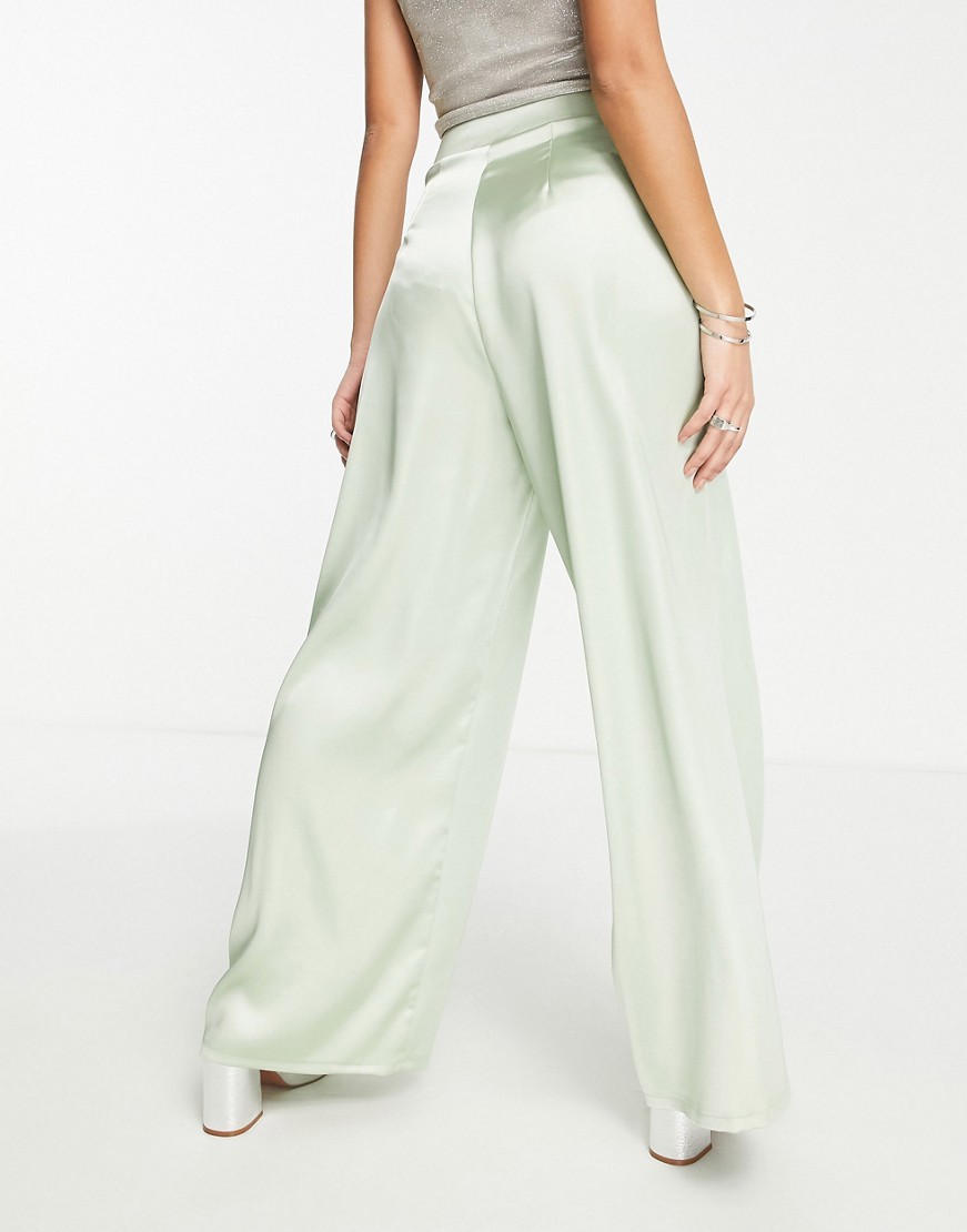 Flounce London zielone satynowe spodnie z szerokimi nogawkami defekt 36