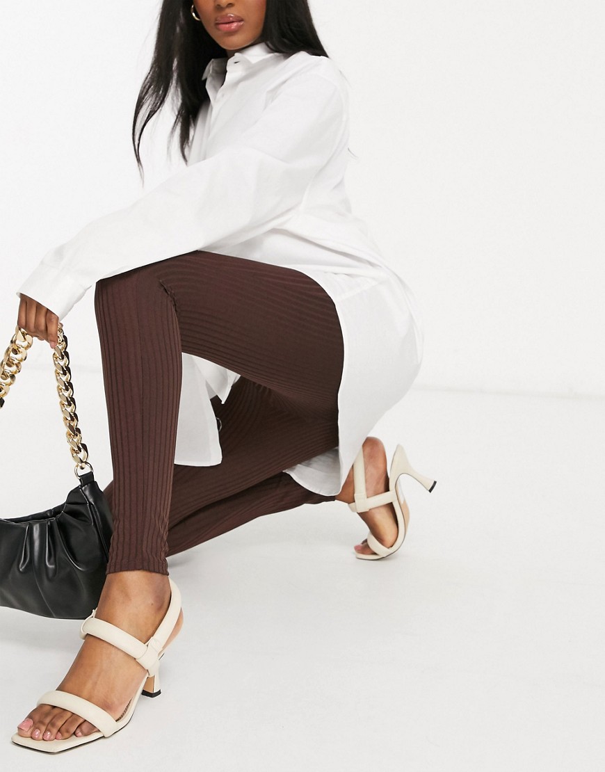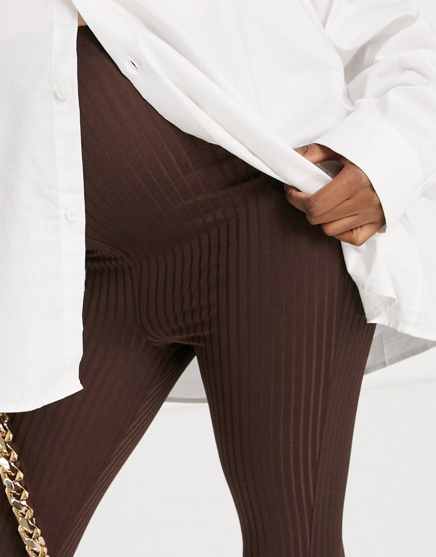Flounce Maternity brązowe prążkowane legginsy ciążowe 38