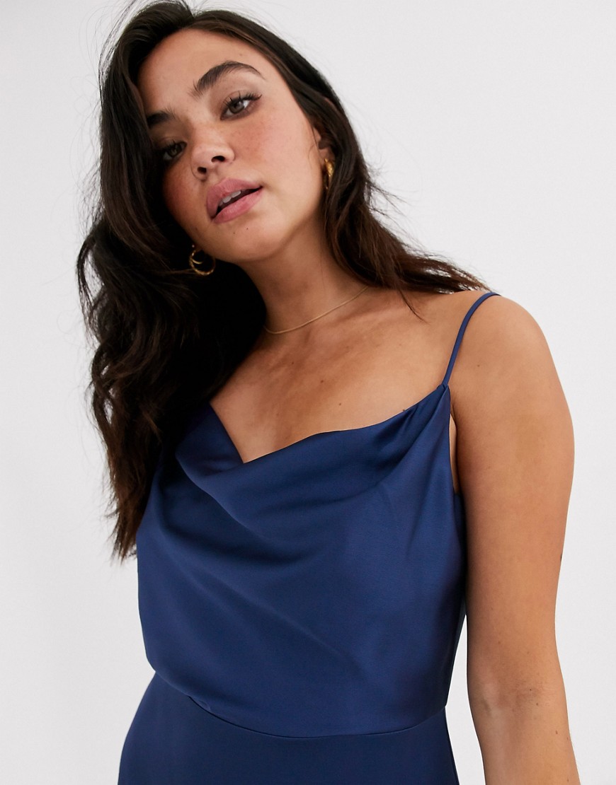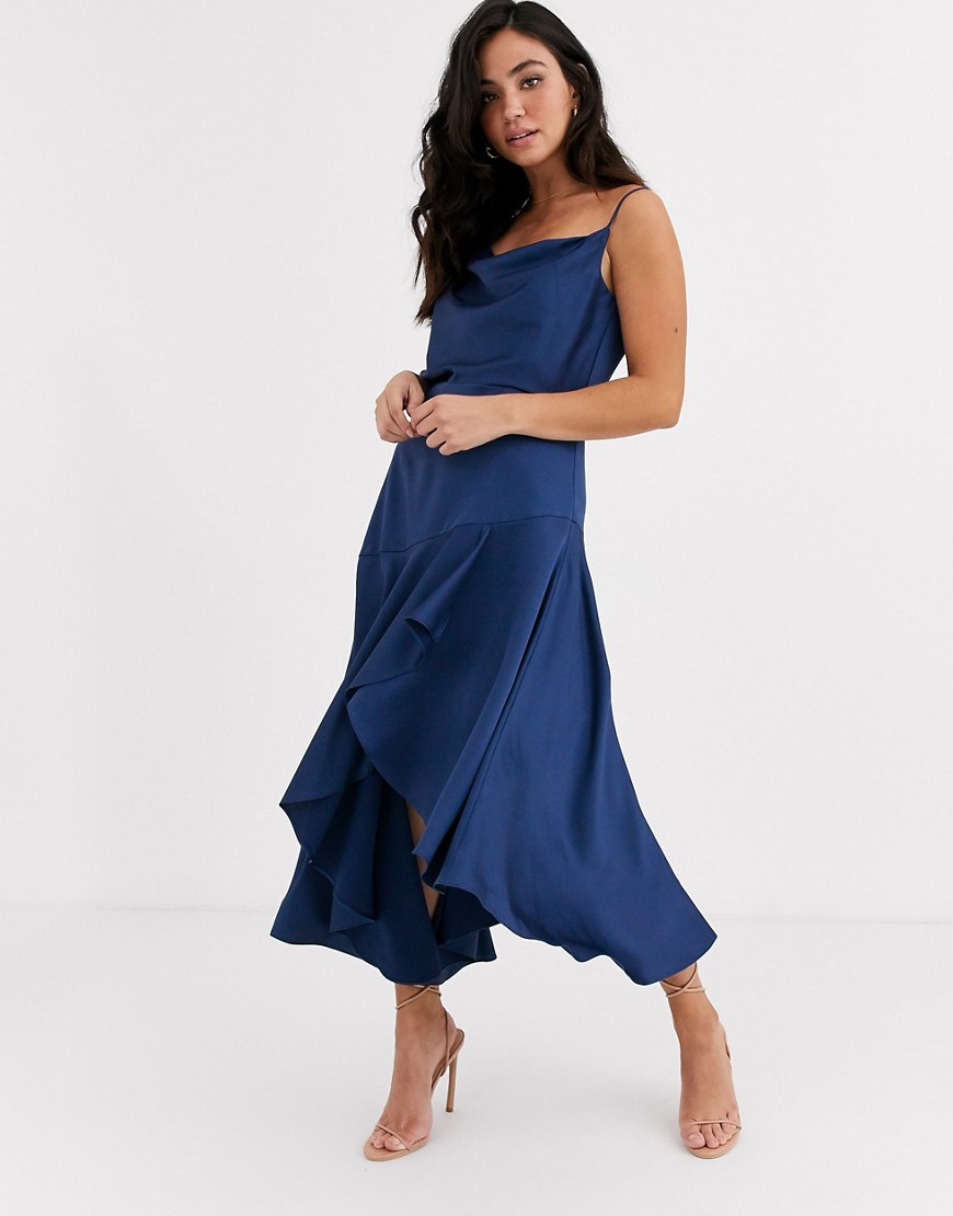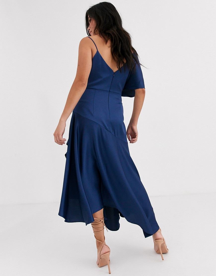 Forever New Ciemnoniebieska satynowa sukienka midi defekt L 40