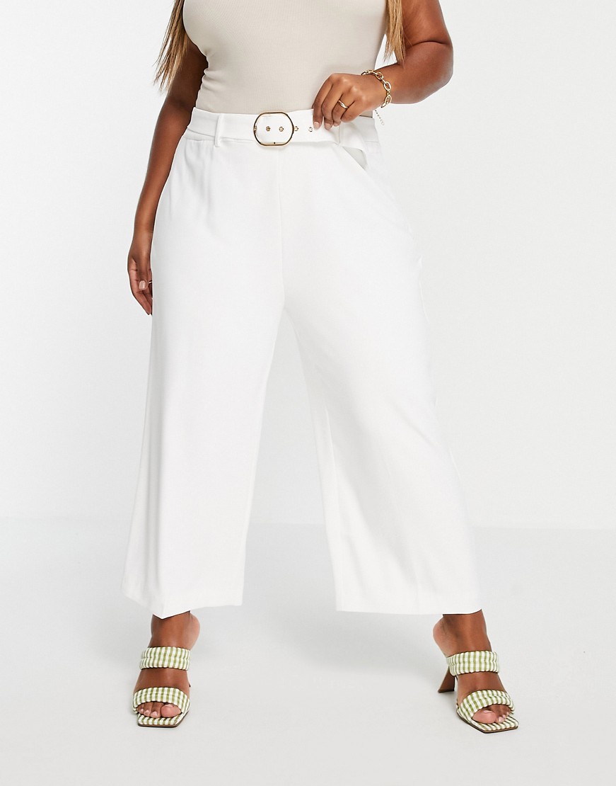 Forever New Dopasowane spodnie białe szerokie nogawki 48