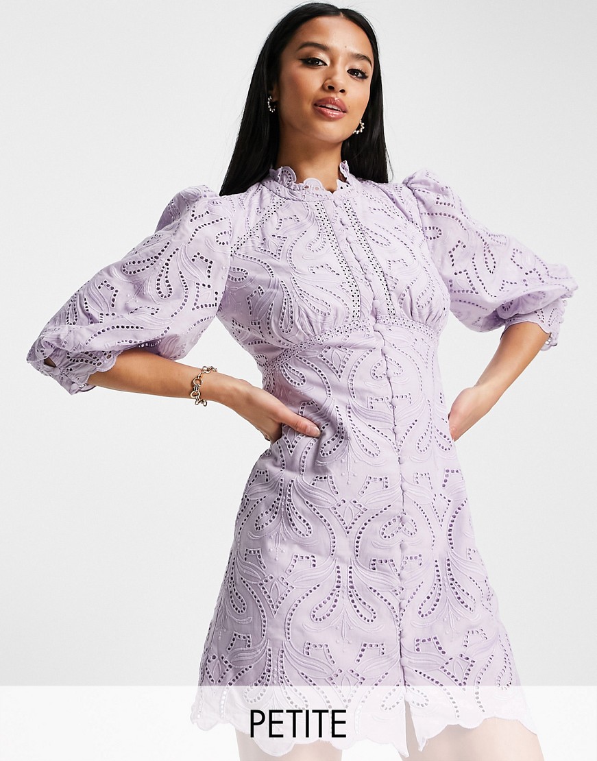 Forever New Petite liliowa sukienka mini z koronkową talią 42
